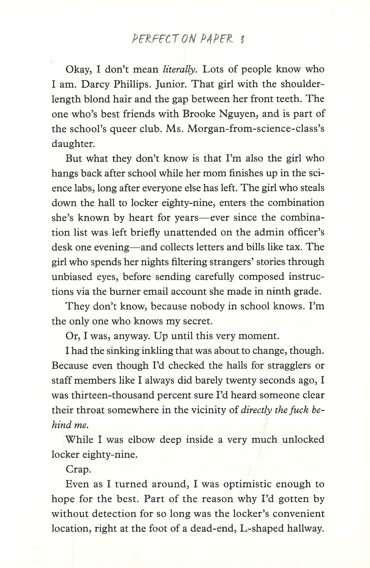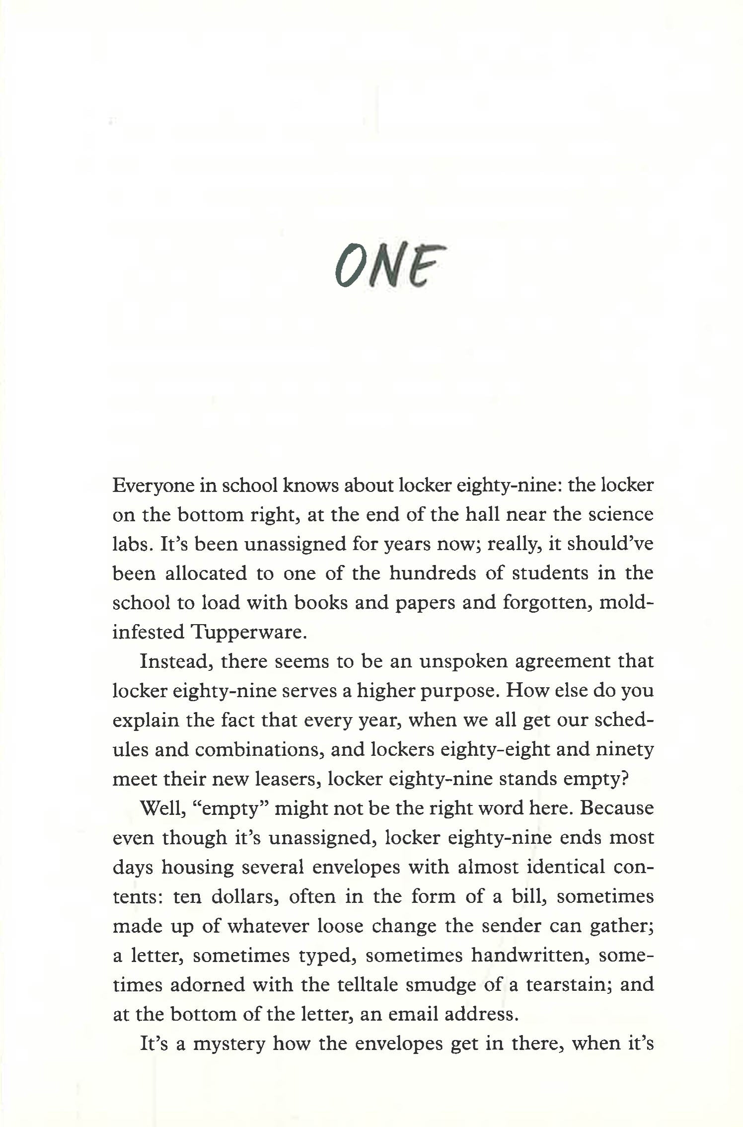 But when Brougham catches Darcy in the act of collecting letters from locker 89 - out of which she's been running her questionably legal, anonymous relationship advice service - that's exactly what happens. In exchange for keeping her secret, Darcy begrudgingly agrees to become his personal dating coach. The goal? To help him win his ex-girlfriend back.