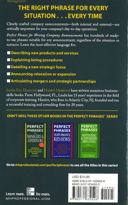 Perfect Phrases for Writing Company Announcements has hundreds of ready-to-use phrases suitable for any announcement, regardless of the situation or scenario. Learn the most effective language for: