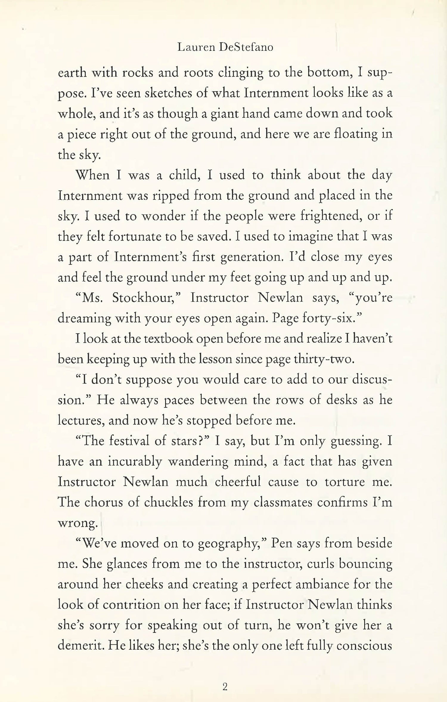 From the New York Times bestselling author of The Chemical Garden trilogy: On the floating city of Internment, you can be anything you dream. Unless you approach the edge. Children's Literature says "shades of Aldous Huxley's Brave New World and George Orwell's 1984 inspire DeStefano's sci-fi/murder mystery page-turner." Morgan Stockhour knows getting too close to the edge of Internment, the floating city and her home, can lead to madness. Even though her older brother, Lex, was a Jumper, Morgan vows never to end up like him. There's too much for her on Internment: her parents, best friend Pen, and her betrothed, Basil. Her life is ordinary and safe, even if she sometimes does wonder about the ground and why it's forbidden. Then a murder, the first in a generation, rocks the city. With whispers swirling and fear on the wind, Morgan can no longer stop herself from investigating, especially once she meets Judas. Betrothed to the victim, Judas is being blamed for the murder, but Morgan is convinced of his innocence. Secrets lay at the heart of Internment, but nothing can prepare Morgan for what she will find--or whom she will lose. *This book may have remainder mark*