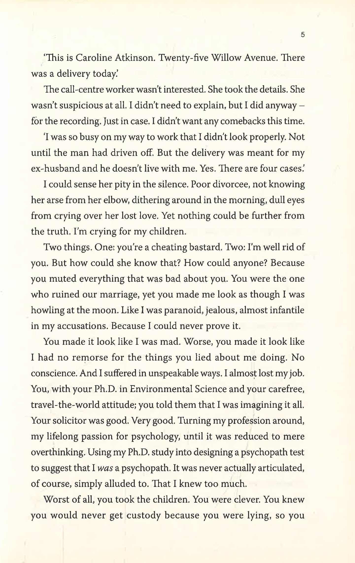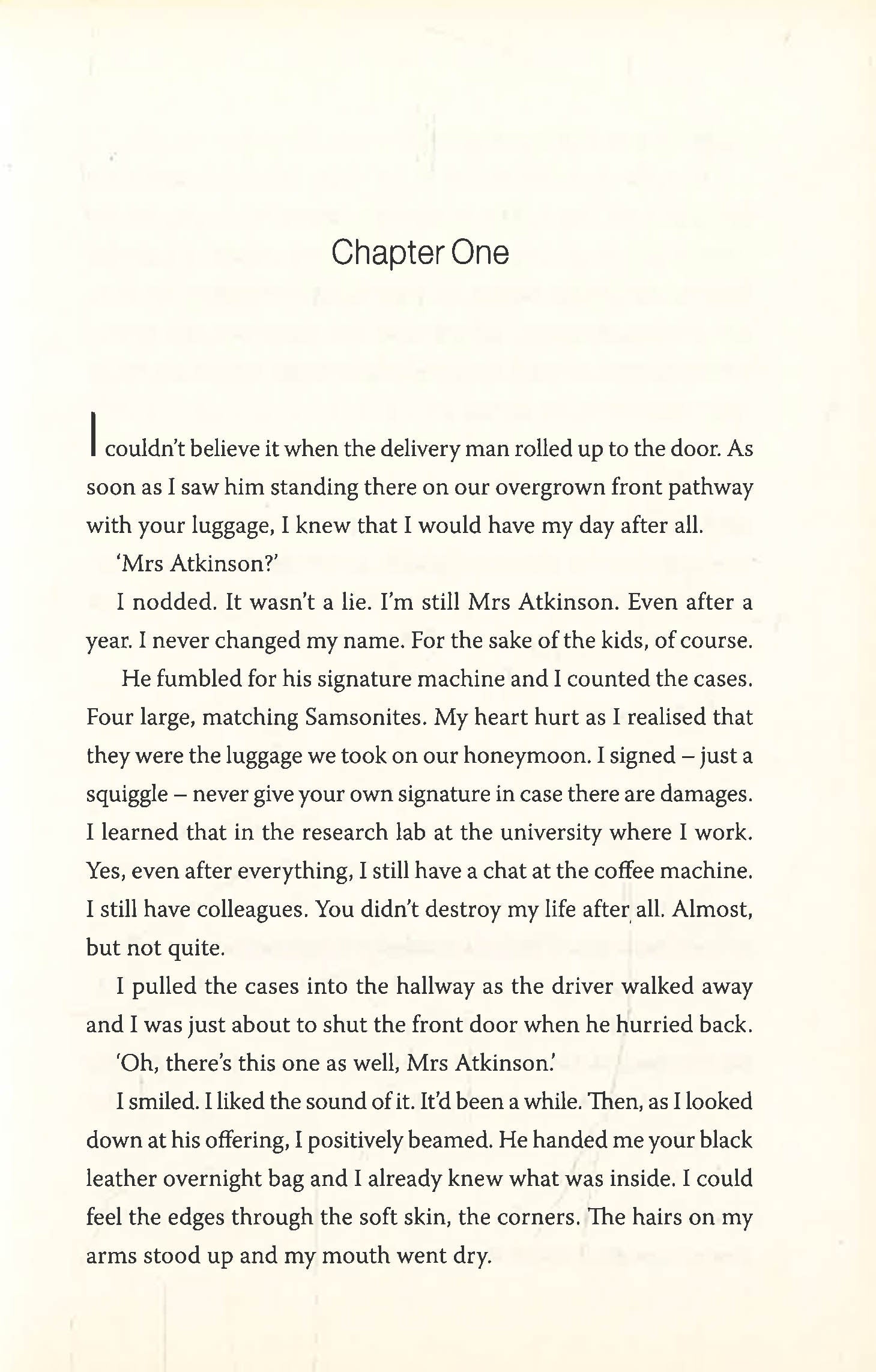 Caroline Atkinson is powerless and angry. She has lost more than most - her marriage, her reputation, even her children. Then one day, she receives an unusual delivery: lost luggage belonging to the very man who is responsible, her estranged husband Jack.