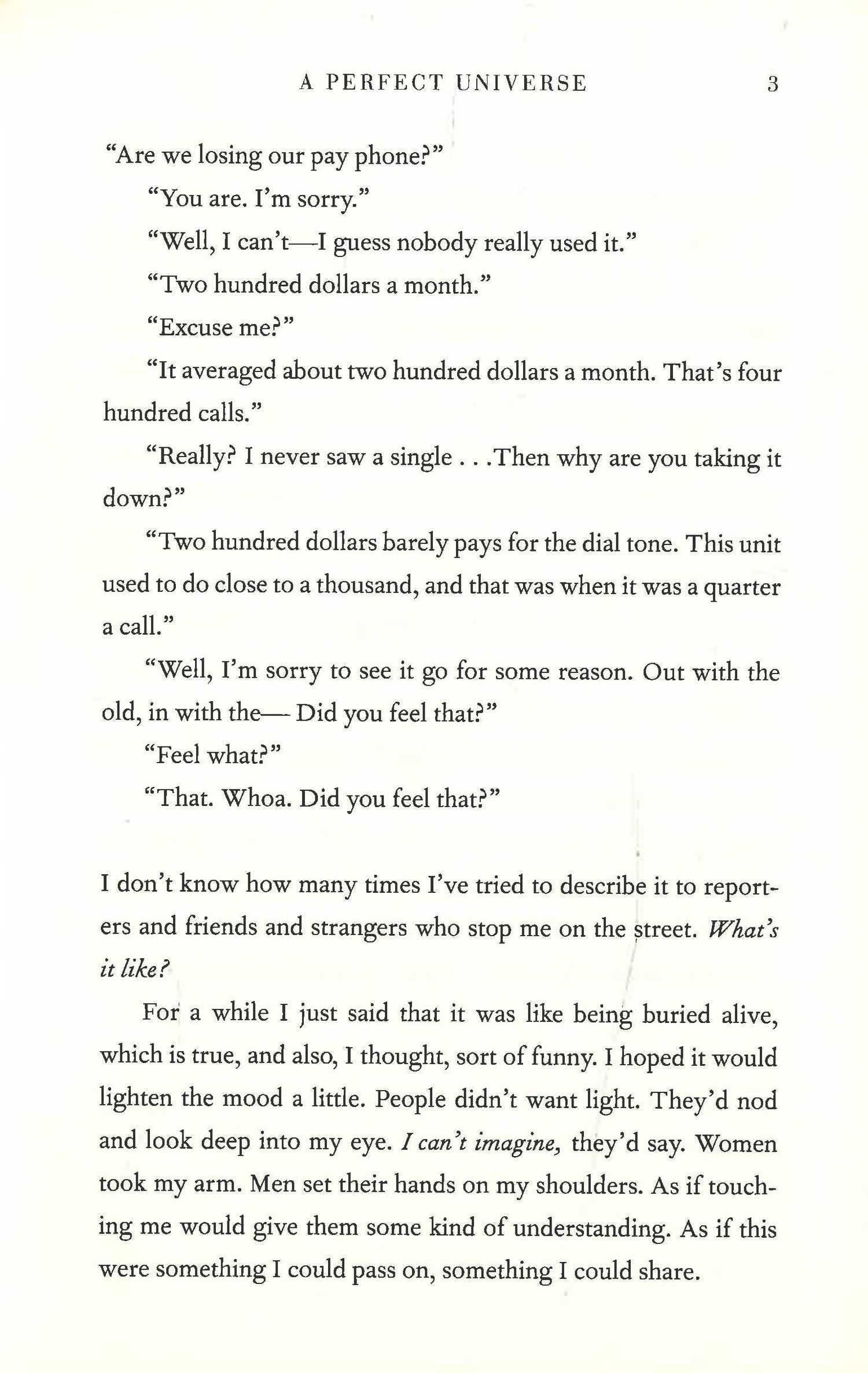 Scott O'Connor's novels have been hailed as "astonishing" (Library Journal), and "so insistently stirring, you want to lean in close to catch every word" (The New York Times Book Review). Now, from the author of Untouchable and Half World comes A Perfect Universe, a piercingly emotional cycle of stories in the tradition of Jennifer Egan's A Visit from the Goon Squad and Annie Proulx's Close Range. Welcome to the often-overlooked corners of sun-bleached Los Angeles, where a teenaged bicycle thief searches for a kidnapped boy, a young musician emerges as the lone survivor of a building collapse, and an aging actor faces the erasure of his past. There, far from the Hollywood spotlight, we also meet two sisters locked in a destructive cycle of memory and illness, coffee-shop regulars whose lives are torn apart by a stunning moment of violence, and the desperate, fraudulent writer whose fictions connect these unforgettable characters in subtle and surprising ways. Sharply observed, exhilaratingly paced, and beautifully written, A Perfect Universe is a masterful exploration of growing up and growing old, loss and longing, identity and deception, and the search for redemption, humanity, and grace.