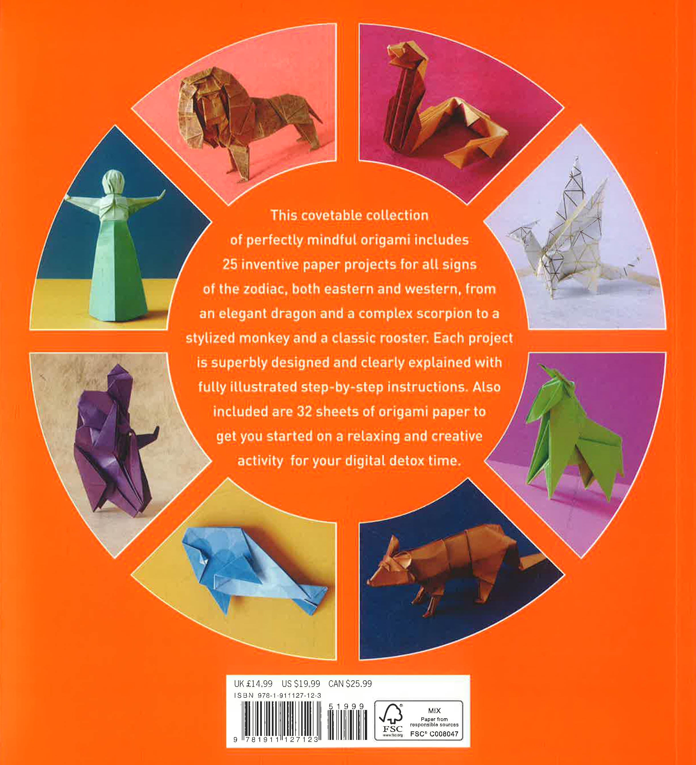 This covetable collection of perfectly mindful origami includes 25 inventive paper projects for all signs of the zodiac, both eastern and western. From an elegant dragon and a complex scorpion to a stylised monkey and a classic rooster, each project is superbly designed and clearly explained with fully illustrated step-by-step instructions. Also included are 30 sheets of origami paper to get you started on a relaxing and creative activity for your digital detox time. Whether you are an origami beginner or a seasoned paper crafter looking for a more complex challenge, Perfectly Mindful Origami will exercise your mind while clearing it of clutter.