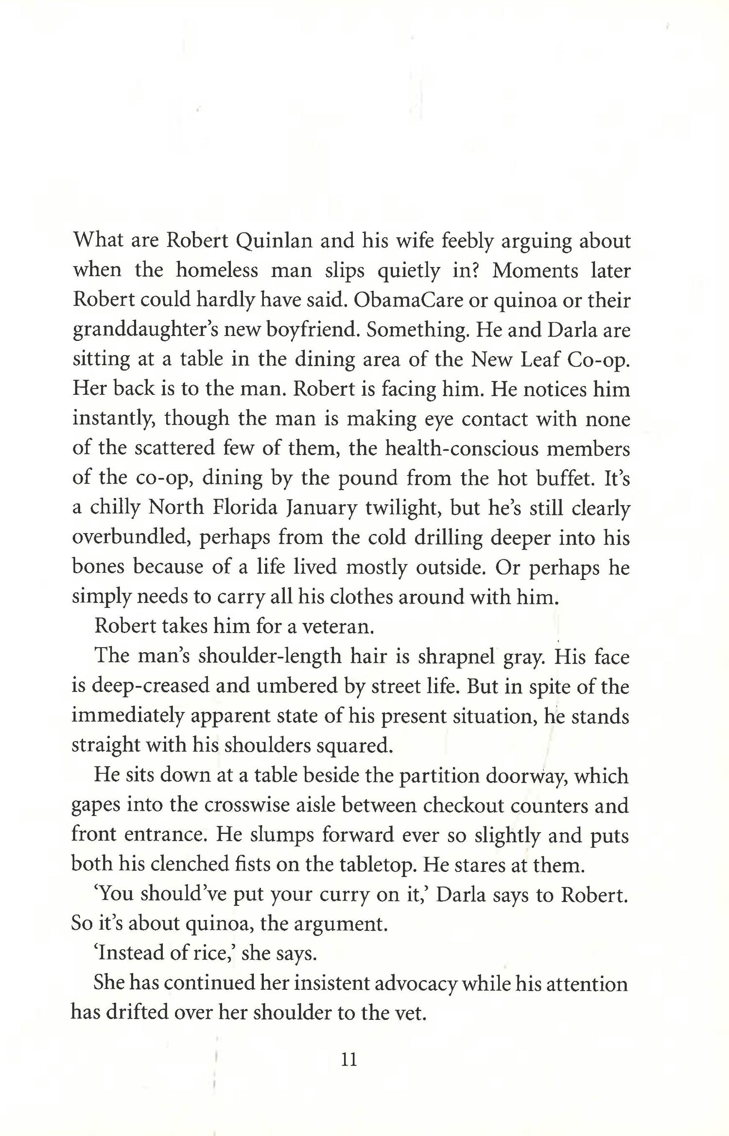 Robert Quinlan and his wife Darla teach at Florida State University. Their marriage, forged in the fervour of anti-Vietnam-war protests, now bears the fractures of time, with the couple trapped in an existence of morning coffee, solitary jogging and separate offices. For Robert and Darla, the cracks remain below the surface, whereas the divisions in Robert's own family are more apparent: he has almost no relationship with his brother Jimmy, who became estranged from the family as the Vietnam War intensified. William Quinlan, Robert and Jimmy's father and a veteran of World War II, is coming to the end of his life, and aftershocks of war ripple across all their lives once again when Jimmy refuses to appear at his father's bedside. And a disturbed homeless man whom Robert at first takes to be a fellow Vietnam veteran turns out to have a devastating impact not just on Robert, but on his entire family.