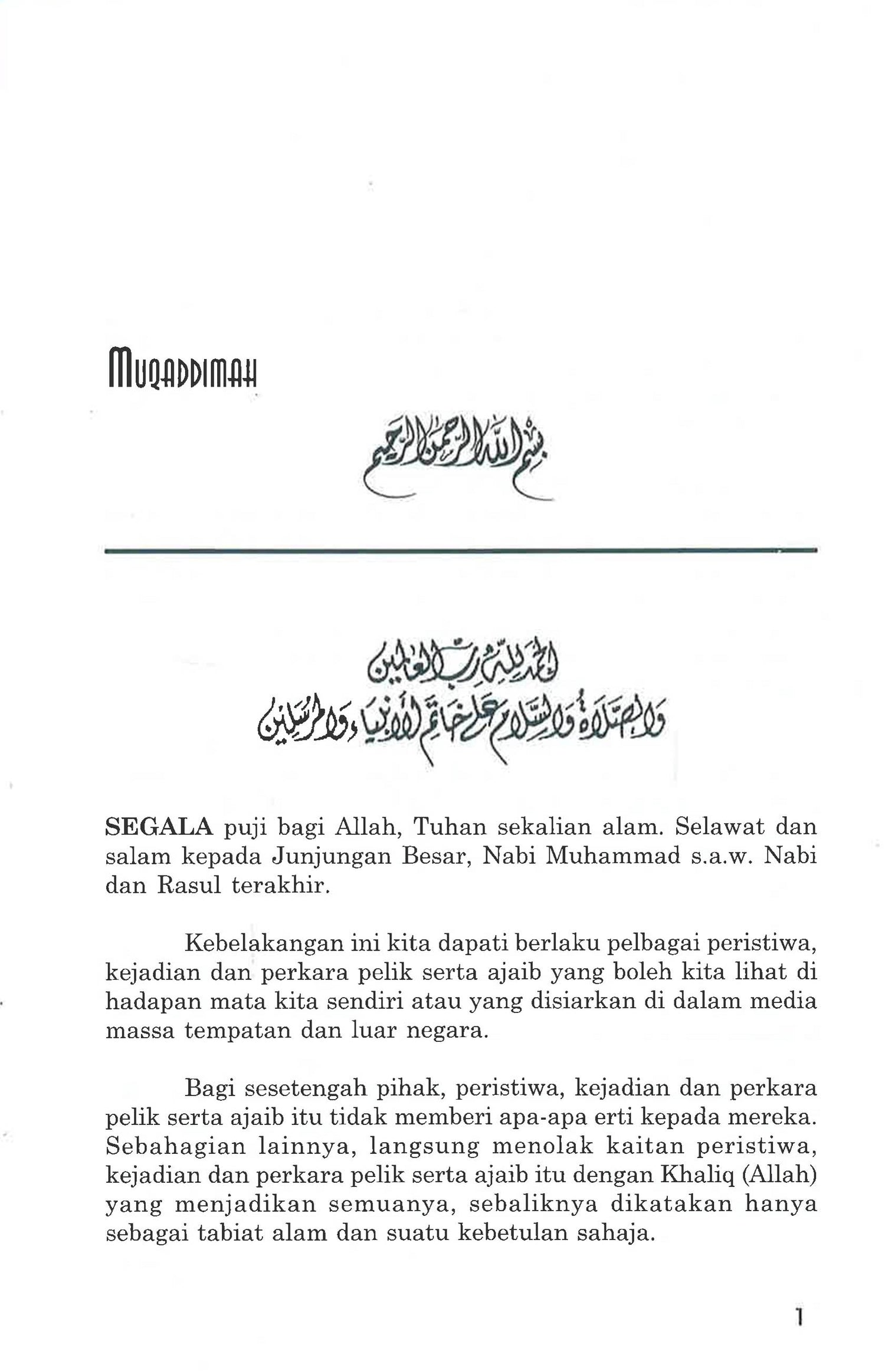 Sesungguhnya apa yang dipaparkan di dalam buku ini merupakan koleksi peristiwa ajaib yang berlaku sepanjang sejarah hidup manusia. Yang patut dijadikan pengajaran Allah adalah Tuhan yang Maha Berkuasa ke atas penciptaanNya. Semoga para pembaca dapat menjadikannya bahan mahasabah diri dalam keimanan dan ketauhidan kepada Allah s.w.t.