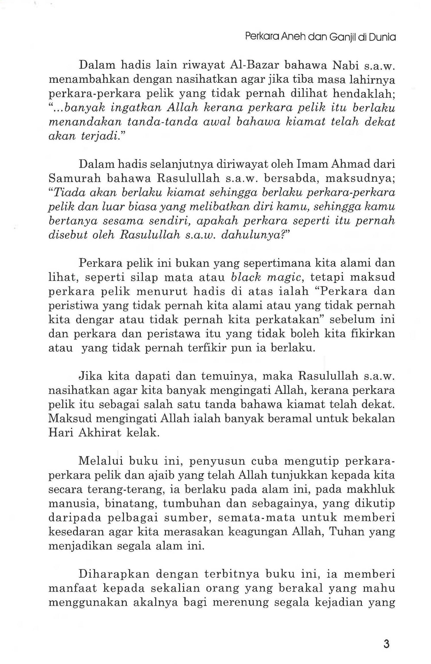Buku ini yang memuatkan sebilangan besar kejadian ajaib itu melampirkan bukti-bukti yang nyata dan lidak dapat dinafikan malah dibenarkan pula oleh firman Allah s.w.t dan keterangan hadis Rasulullah s.a.w.