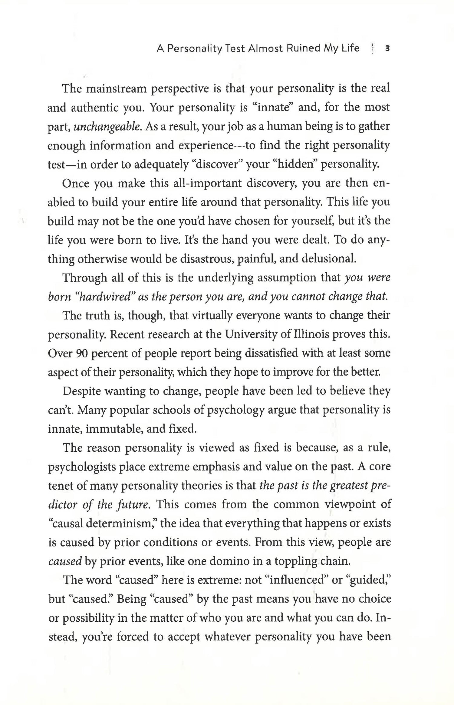 Filled with strategies for reframing your past and designing your future, Personality Isn’t Permanent is a guide to breaking free from the past and becoming the person you want to be.