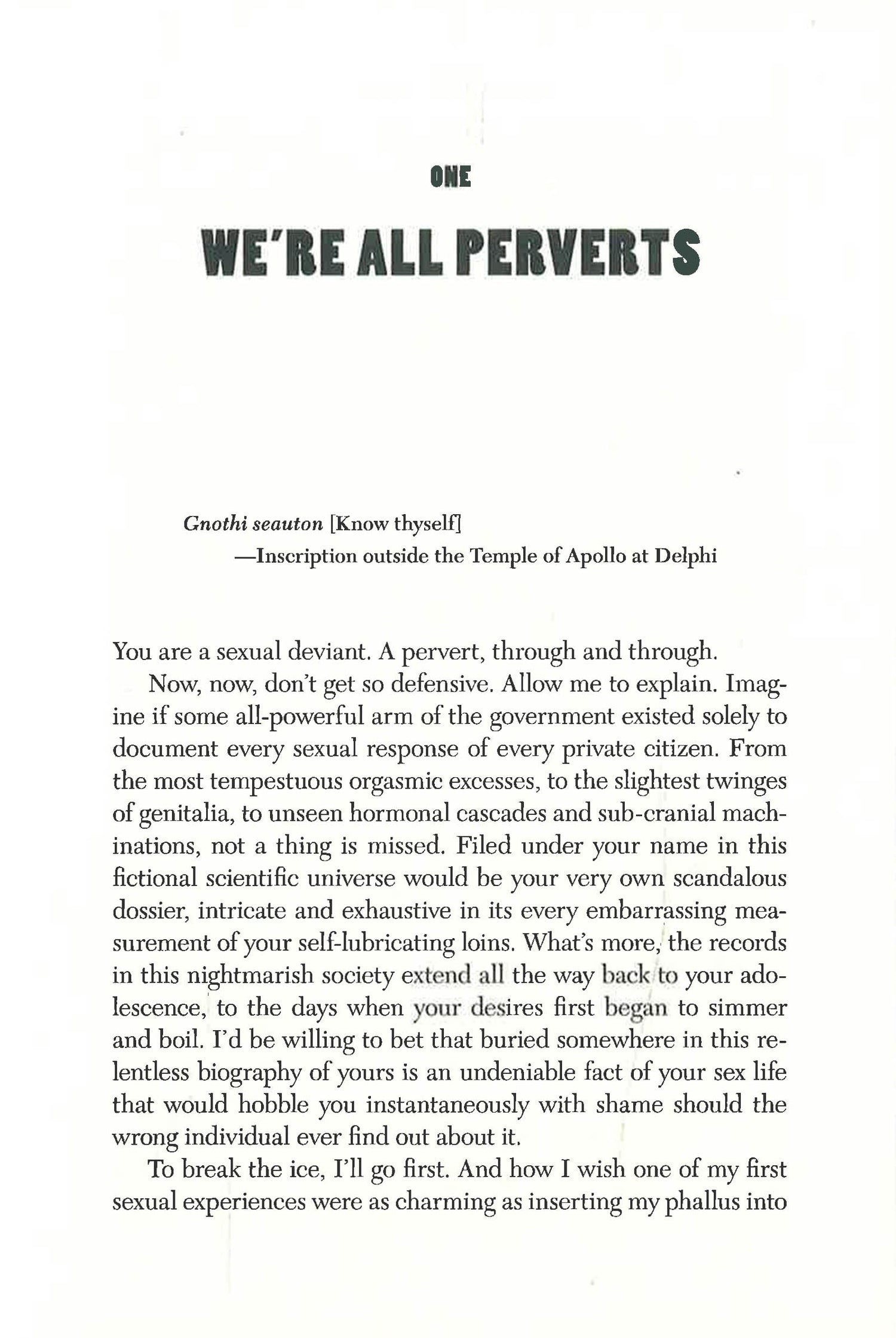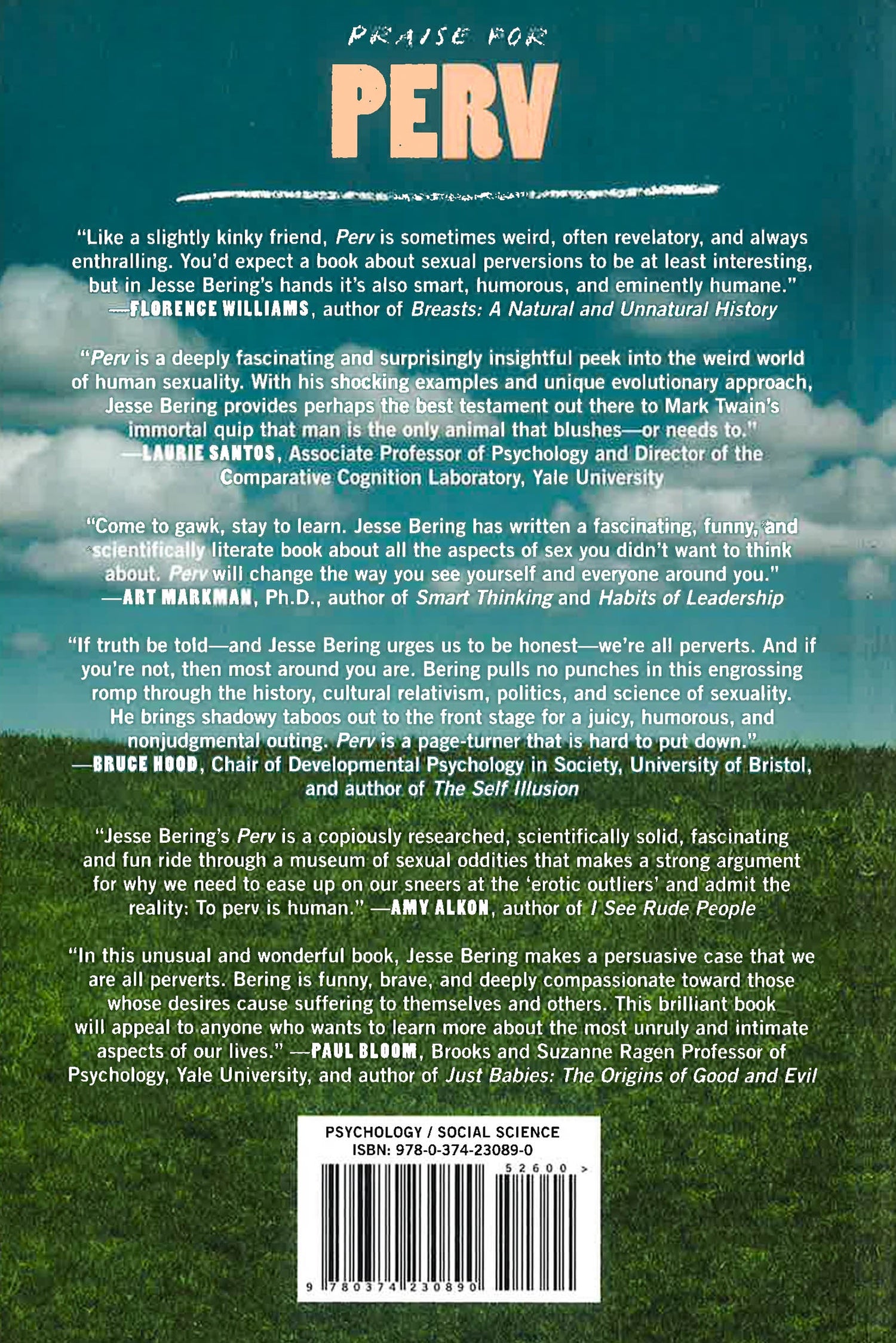 "You are a sexual deviant. A pervert, through and through." We may not want to admit it, but as the award-winning columnist and psychologist Jesse Bering reveals in "Perv," there is a spectrum of perversion along which we all sit. Whether it's voyeurism, exhibitionism, or your run-of-the-mill foot fetish, we "all" possess a suite of sexual tastes as unique as our fingerprints and as secret as the rest of the skeletons we've hidden in our closets.Combining cutting-edge studies and critiques of landmark research and conclusions drawn by Sigmund Freud, Alfred Kinsey, and the "DSM-5," Bering pulls the curtain back on paraphilias, arguing that sexual deviance is commonplace. He explores the countless fetishists of the world, including people who wear a respectable suit during the day and handcuff a willing sexual partner at night. But he also takes us into the lives of "erotic outliers," such as a woman who falls madly in love with the Eiffel Tower; a pair of "deeply "affectionate identical twins; those with a particular penchant for statues; and others who are enamored of crevices "not "found on the human body. Moving from science to politics, psychology, history, and his own reflections on growing up gay in America, Bering confronts hypocrisy, prejudice, and harm as they relate to sexuality on a global scale. Humanizing so-called deviants while at the same time asking serious questions about the differences between thought and action, he presents us with a challenge: to understand that our best hope of solving some of the most troubling problems of our age hinges entirely on the "amoral "study of sex.As kinky as it is compassionate, illuminating, and engrossing, "Perv "is an irresistible and deeply personal book. "I can't promise you an orgasm at the end of our adventure," Bering writes, "but I "can" promise you a better understanding of why you get the ones you do.""