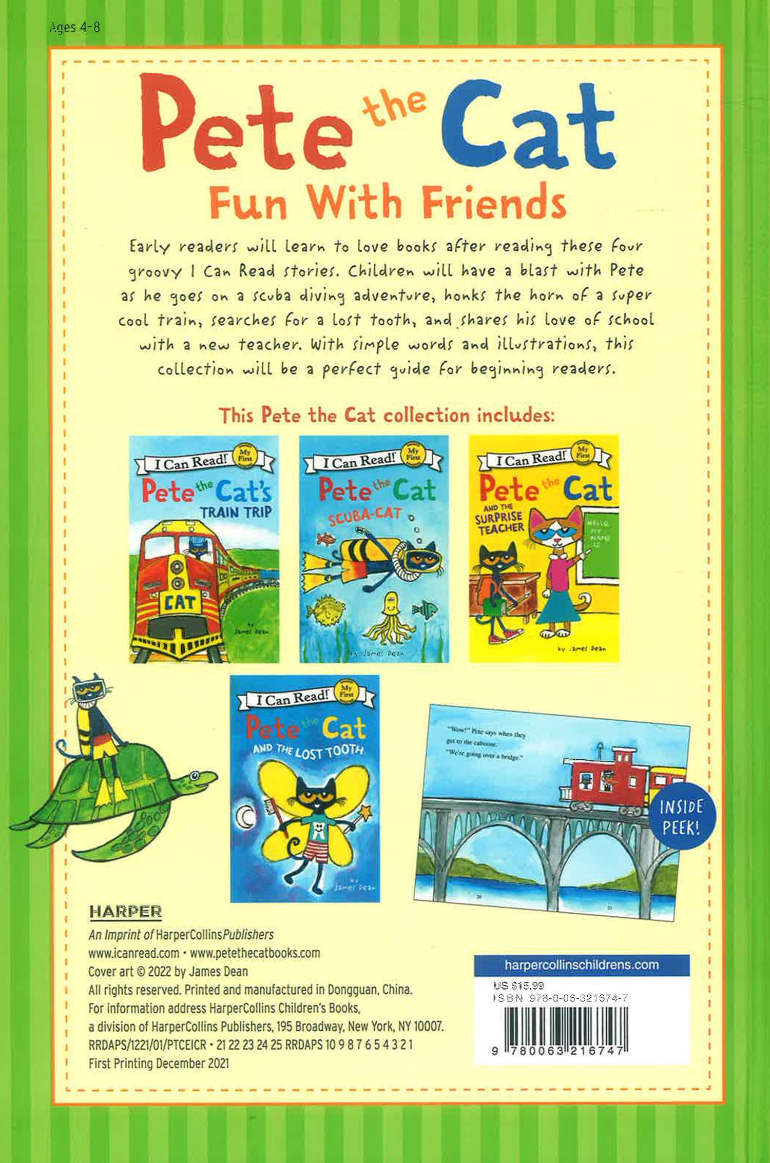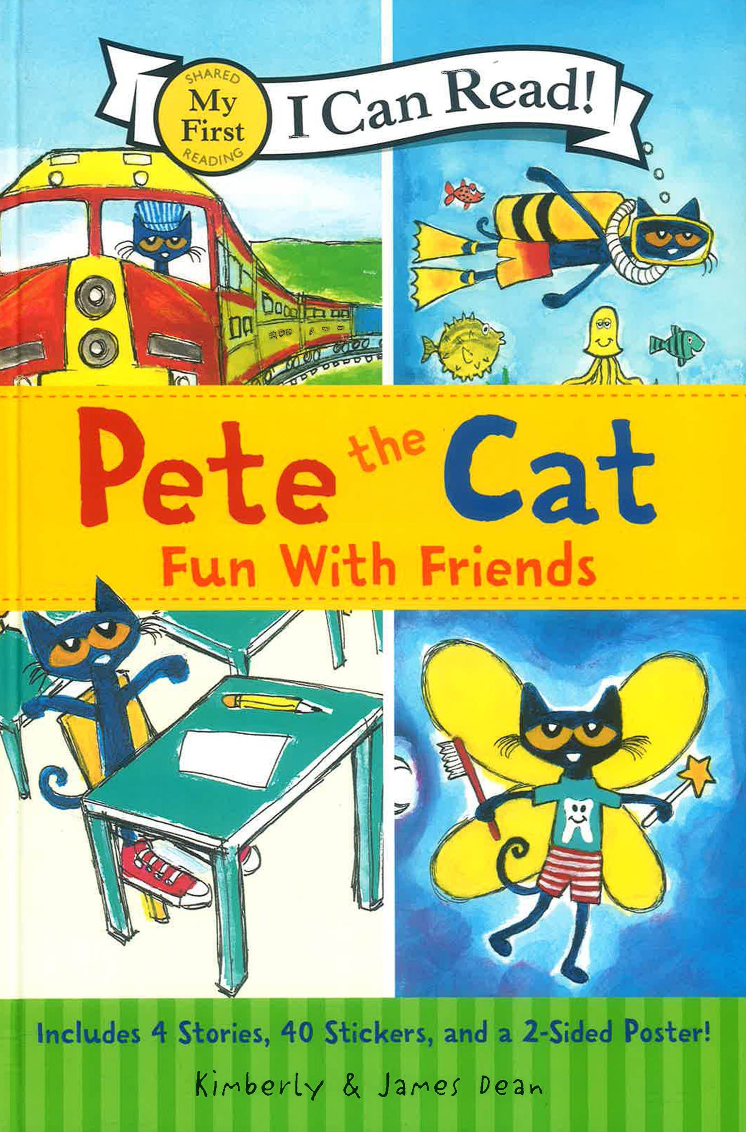 Early readers will learn to love books after reading these four groovy I Can Read stories. Children will have a blast with Pete as he goes on a scuba diving adventure, honks the horn of a super cool train, searches for a lost tooth, and shares his love of school with a new teacher. With simple words and illustrations, this collection will be a perfect guide for beginning readers. It also includes 40 stickers and a 2-sided poster!