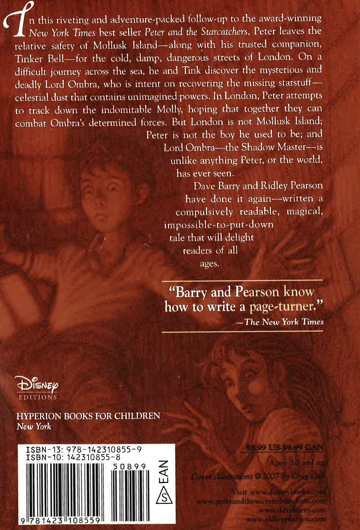In this riveting and adventure-packed follow-up to Peter and the Starcatchers, we discover Peter leaving the relative safety of Mollusk Island-along with his trusted companion Tinker Bell-for the cold, damp streets of London. On a difficult journey across the sea, he and Tink discover the dark and deadly, slithering part-man/part-creature Lord Ombra. It seems that the dreaded Ombra has a variety of mysterious powers including the ability to make shadows disappear. When Peter reaches London, he sets out to find the indomitable Molly. Together they must combat Ombra's terrible forces to both protect the Starcatchers and the treasured starstuff and most importantly to rescue Molly's mother from the clutches of evil. Dave Barry and Ridley Pearson have done it again-written a compulsively readable, impossible-to-put-down tale that will delight readers of all ages.