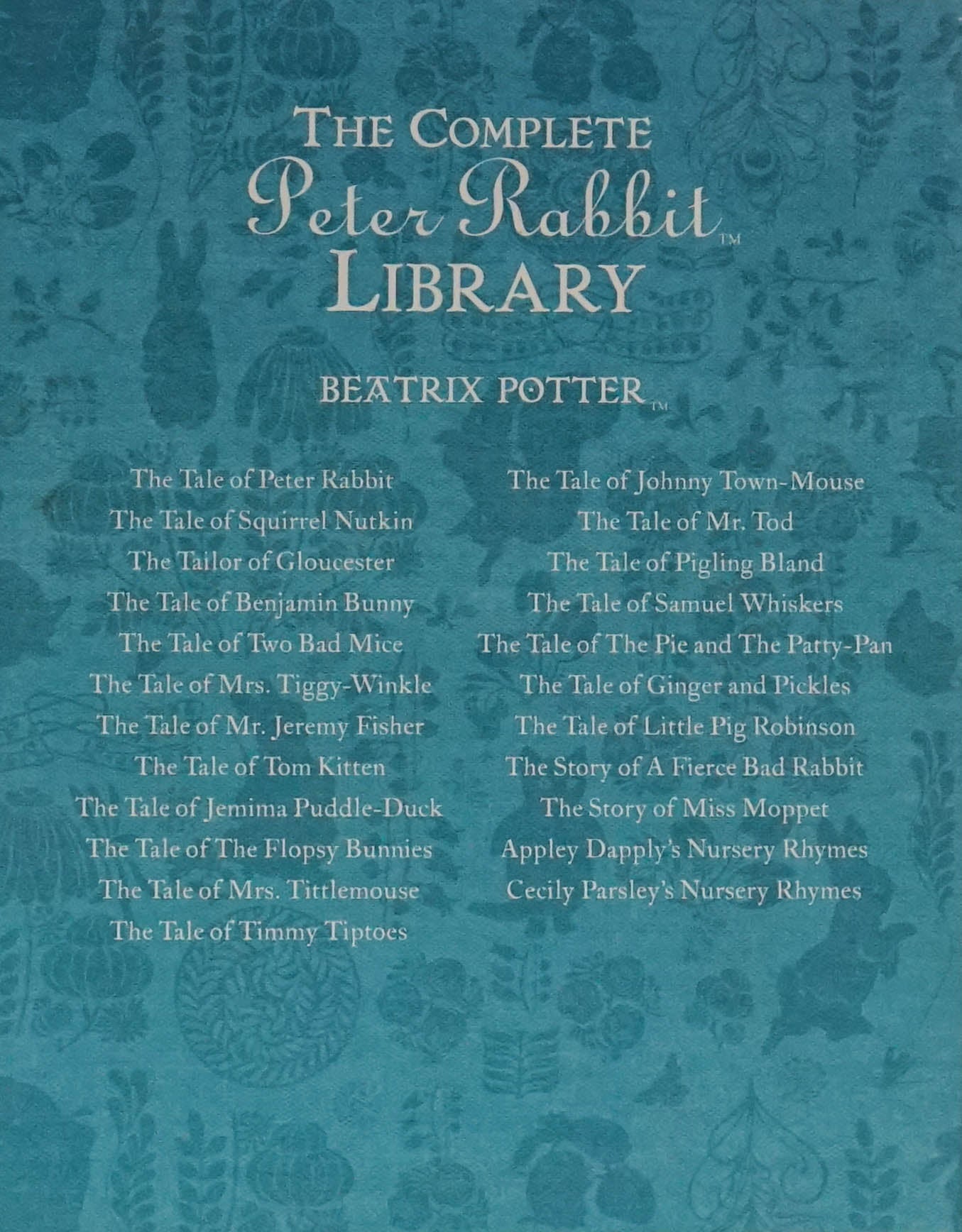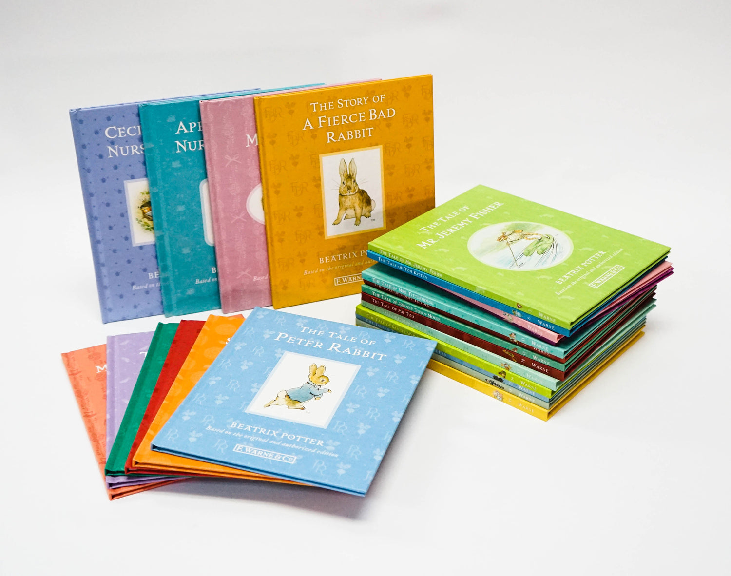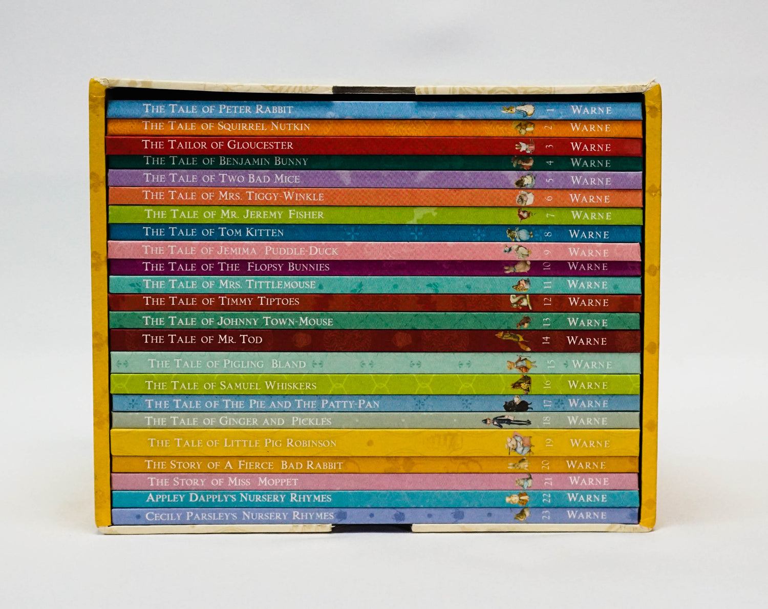 Beautiful gift box containing all 23 Original Peter Rabbit Books. Loved the world over for a century each little book takes you deep into the English countryside as you become familiar with Beatrix Potter's famous and (mostly!) lovable characters, from naughty Peter Rabbit himself, to tidy Mrs Tittlemouse and unlucky Jeremy Fisher. Each tale with its soft water-colour artwork will delight and charm adults and children alike. Which is your favourite?