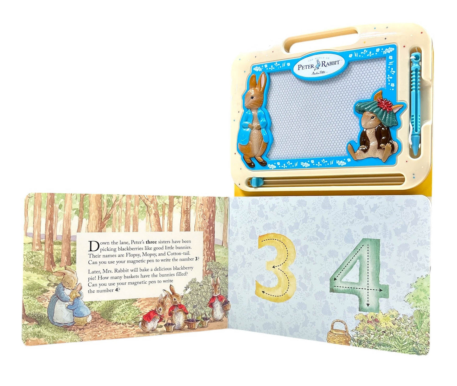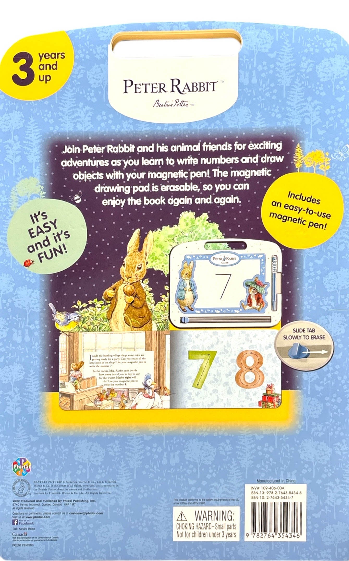 Join Peter Rabbit and his animal friends for exciting adventures as you learn to write numbers and draw objects with your magnetic pen! The magnetic drawing pad is erasable, so you can enjoy the book again and again.