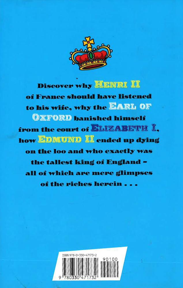 "PARP!" Pssst! Do you know the story about Queen Elizabeth I (1533-1603) and the, er, farting courtier? One day, when bowing low to Her Majesty, the Earl of Oxford couldn't help but break wind. The poor man felt so embarrassed that he left the court - and some say the country - for seven years. Upon his return, after such a long absence, the first thing Good Queen Bess said on seeing him was, "Lord, I had forgot the fart!" A very funny collection of fantastic trivia and amazing facts about royalty and rulers of all kinds throughout history, all from the very witty pen of Philip Ardagh.