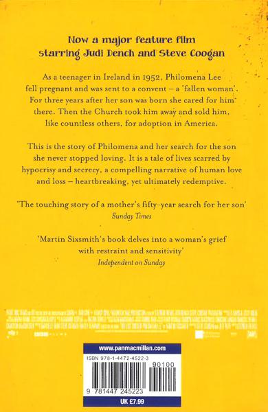 When she fell pregnant as a teenager in Ireland in 1952, Philomena Lee was sent to a convent to be looked after as a fallen woman. She cared for her baby for three years until the Church took him from her and sold him, like countless others, to America for adoption. Philomena's son grew up to be a top Washington lawyer and a leading Republican official in the Reagan and Bush administrations. But he was a gay man in a homophobic party where he had to conceal not only his sexuality but, eventually, the fact that he had AIDs. With little time left, he returned to Ireland and the convent where he was born: his desperate quest to find his mother before he died left a legacy that was to unfold with unexpected consequences for all involved. This is the Film Tie-In edition of Martin Sixsmith's moving book. The film stars Dame Judi Dench, and is currently scheduled for Boxing Day release.