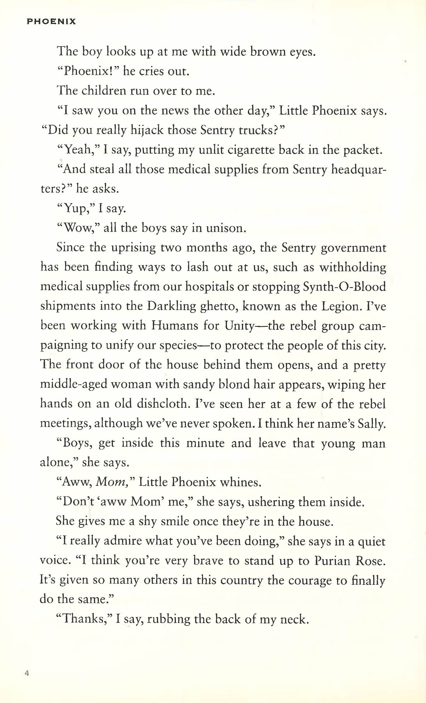 Weeks after his crucifixion and rebirth as Phoenix, Ash Fisher believes his troubles are far behind him. He and Natalie are engaged and life seems good. But his happiness is short-lived when he receives a threatening visit from Purian Rose, who gives Ash an ultimatum: vote in favor of Rose's Law permanently relegating Darklings to the wrong side of the wall or Natalie will be killed. The decision seems obvious to Ash; he must save Natalie. But when Ash learns about The Tenth, a new and deadly concentration camp where the Darklings would be sent, the choice doesn't seem so simple. Unable to ignore his conscience, Ash votes against Rose's Law, signing Natalie's death warrant and putting a troubled nation back into the throes of bloody battle.