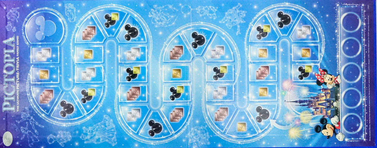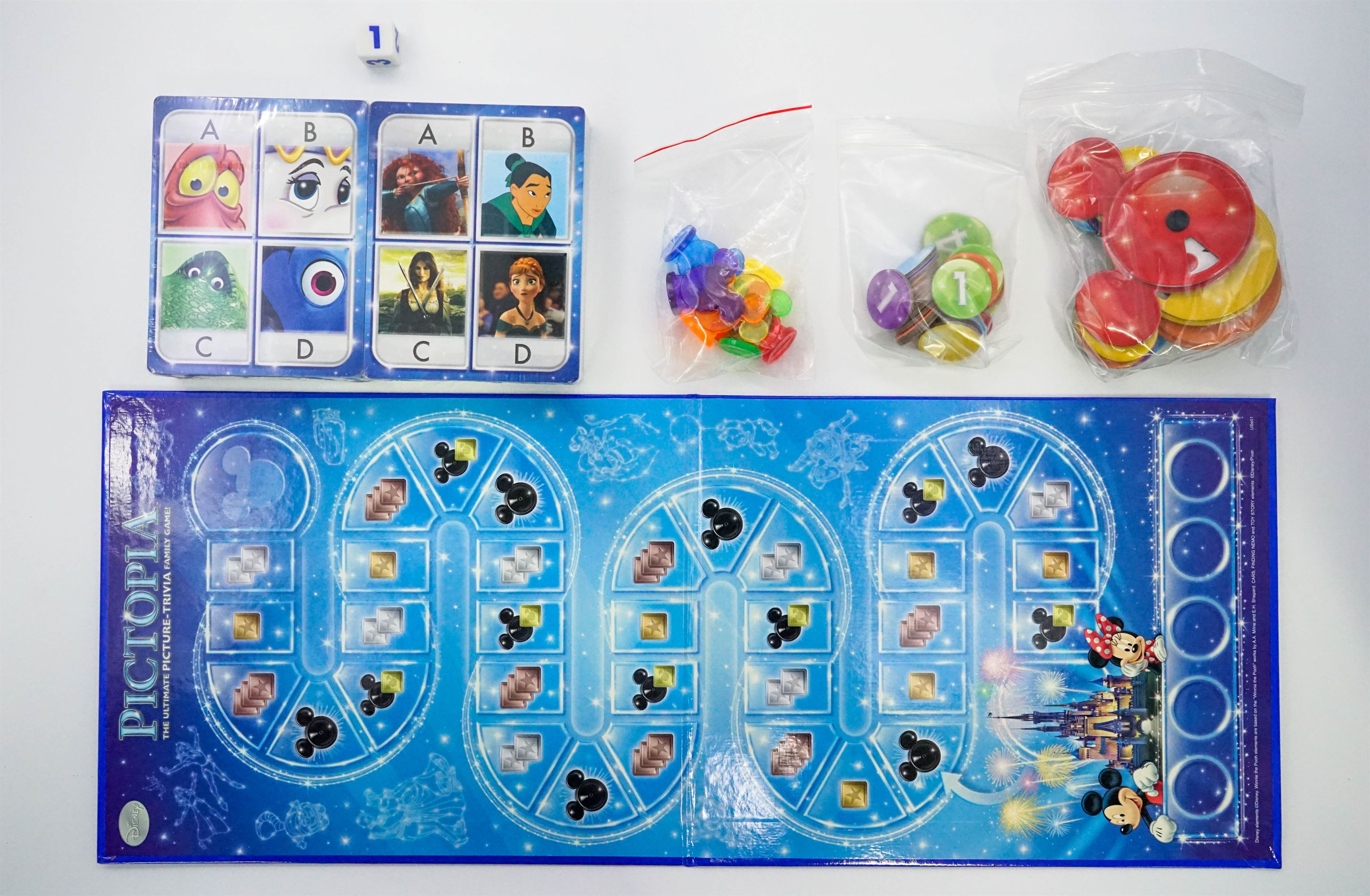 Discover exciting trivia that celebrates the world of Disney, from animated classics and blockbuster movies to television hits and dazzling theme park destinations! Test how much you know about touchstone characters like Mickey Mouse, Cinderella, Jack Sparrow, Buzz Lightyear, and Elsa from Frozen! It’s a game of teamwork—with a competitive twist! Along the way, are guess-my-answer questions that reveal how much you know about the other players! Add even more content with the Pictopia App (available on Android and iOS) that includes a nail-biting Final Challenge round to take board game play to the next level! 1, 2, 3...play! Players take turns being the host and asking the question. Other players will wager based on how well they know the images on the card shown to them. Sometimes you’ll have to answer questions all on your own, and other times you’ll work as a team to answer correctly! Answer questions correctly to advance your mover and get to the castle space first to win!
