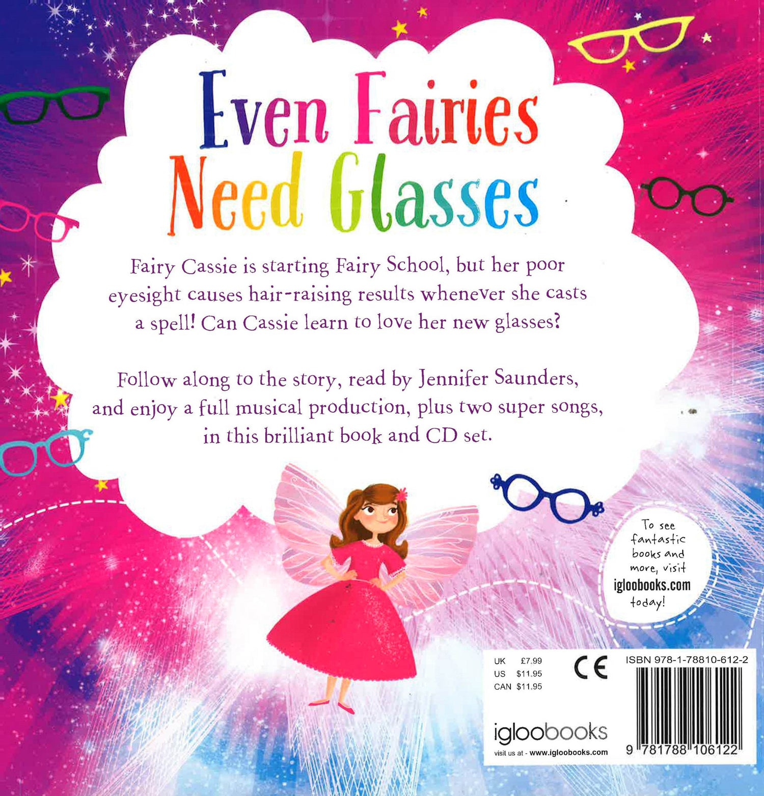 Fairy Cassie is starting Fairy School, but her poor eyesight causes hair-raising results whenever she casts a spell! Can Cassie learn to love her new glasses? Follow along to the story, read by Jennifer Saunders, and enjoy a full musical production, plus two super songs, in this brilliant book and CD set.