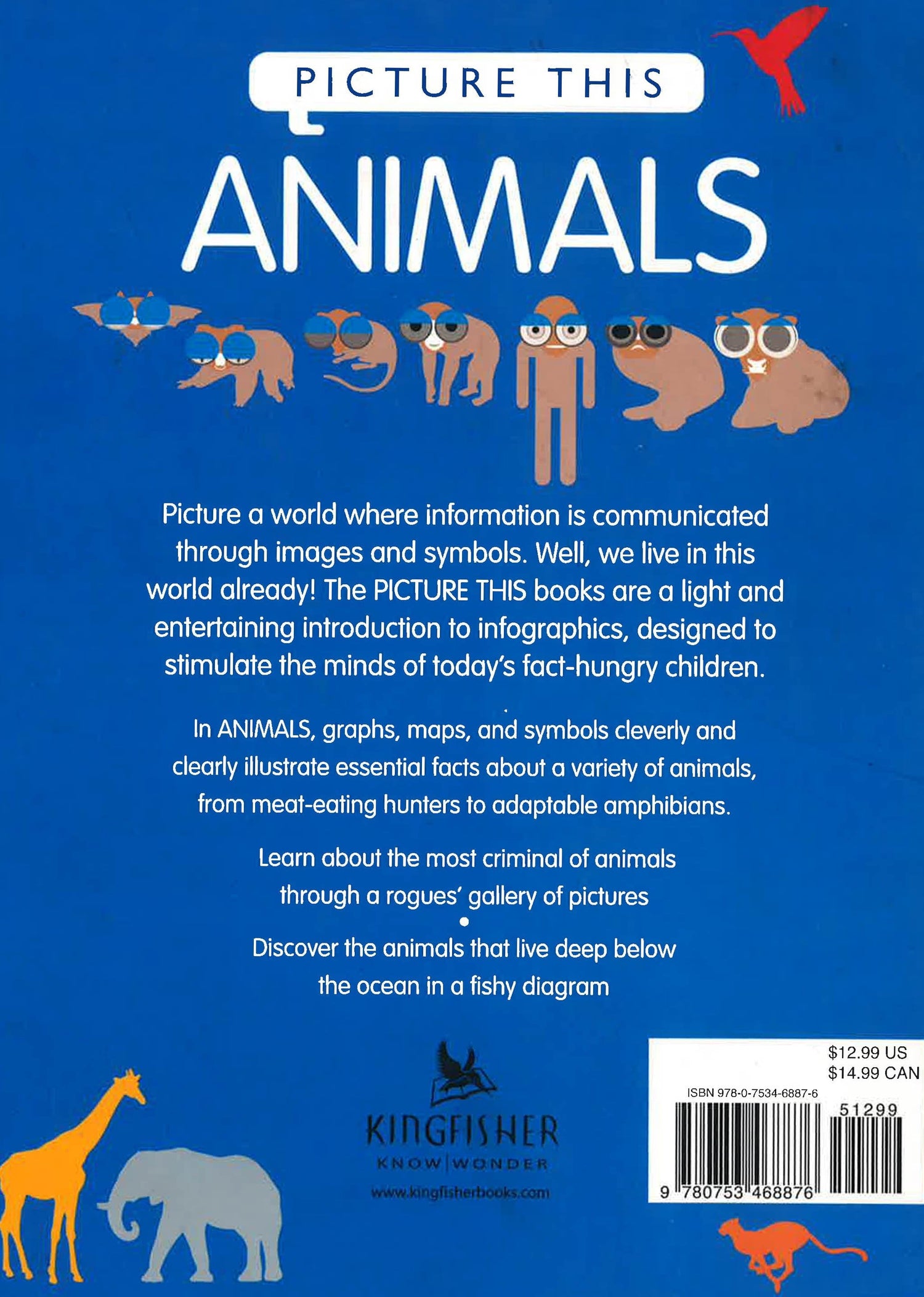 Picture This! Animals is a quick, clean, no-nonsense reference book all about the animal world. Designed for the sophisticated eye of today's middle schoolers, fascinating facts and important information alike about all types of animals is presented both visually and in text form. With clean, fresh illustrations and diagrams to provide extra support, Picture This! Animals covers the themes most commonly covered in this widely studied science subject-area. Topics covered include animal characteristics, defense, habitats, migration patterns, food webs, adaptation, birth and growth, and conservation. Broken down into easily digestible, bite-sized sections, this book is a must have for every classroom, library, and home bookshelf
