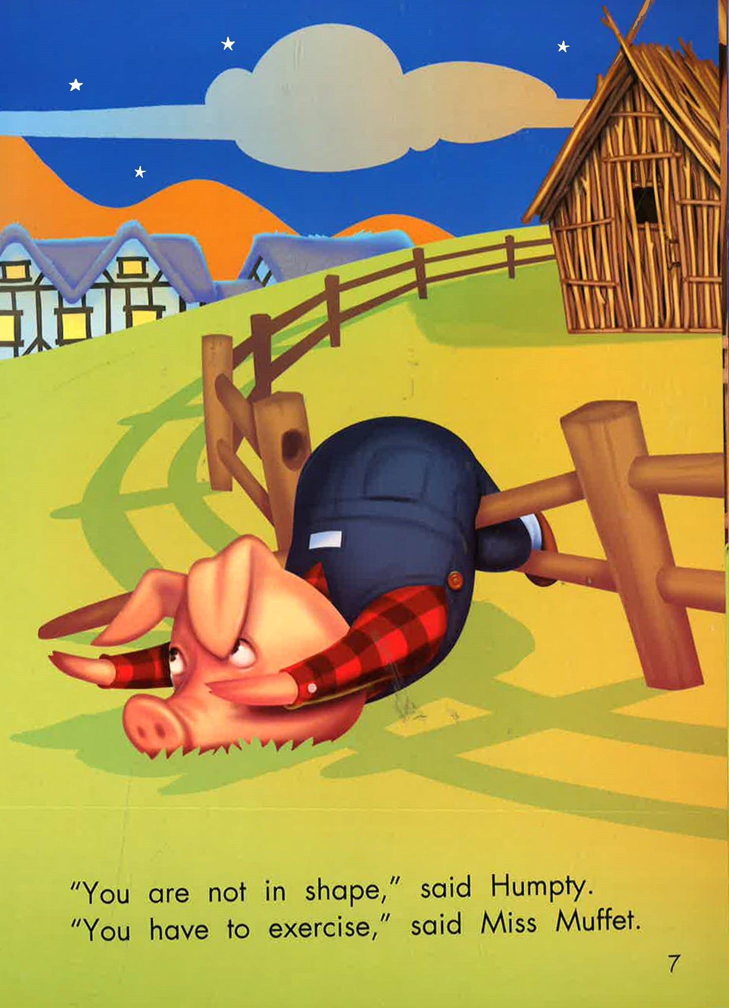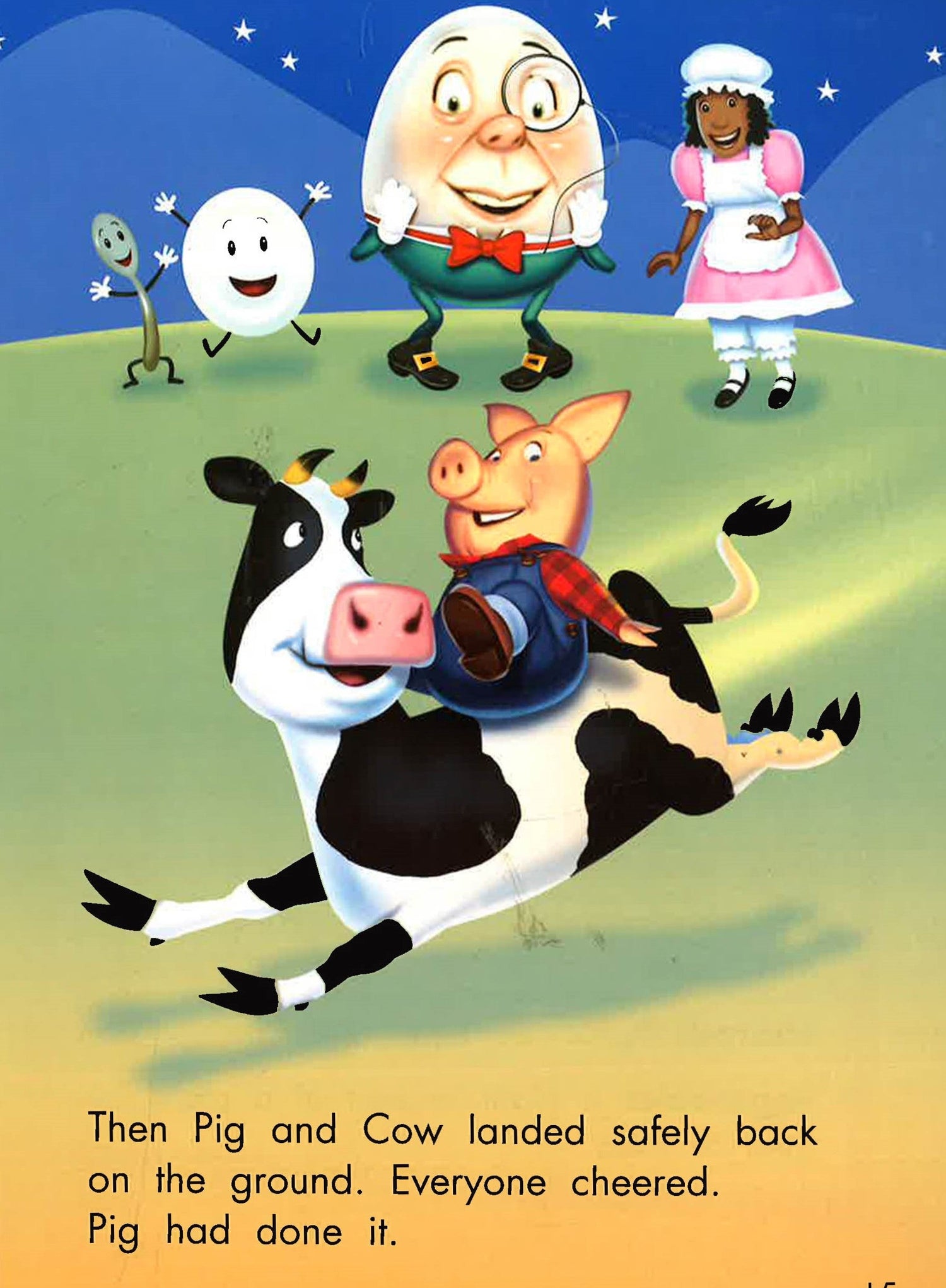 When Pig tries to jump over the moon like cow, the other animals tell him