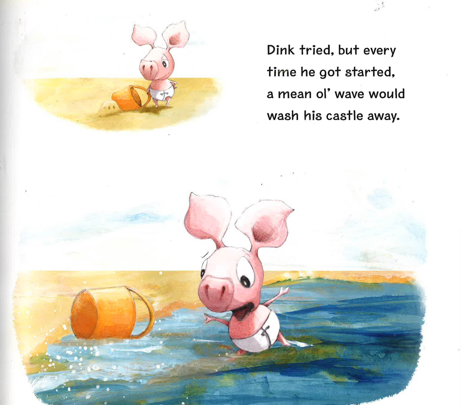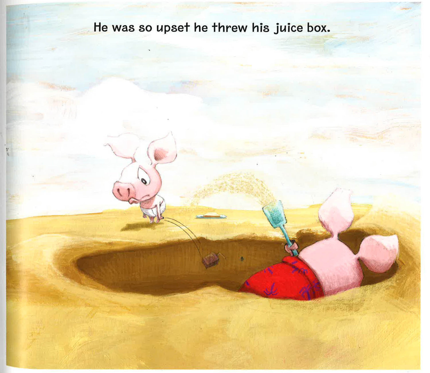 Our favorite porcine-brother duo is back in another kid-friendly seashore adventure. Fergus and Dink love playing at the beach.But when Dink wakes up from his nap in a crabby mood, it's up to big brother Fergus to pull him out of it. Does the little fella want to take a swim? Build a sand castle? Have a juice box? "Aaargh! "Only one thing will tame the tantrum: When Fergus invites Dink to play with his new pirate ship of sand, and gives him the starring role as pirate captain. Sometimes it feels right to squint your eyes and act like a scurvy dog of a pirate. And with a little brotherly love, you might even forget what was so terrible in the first place "