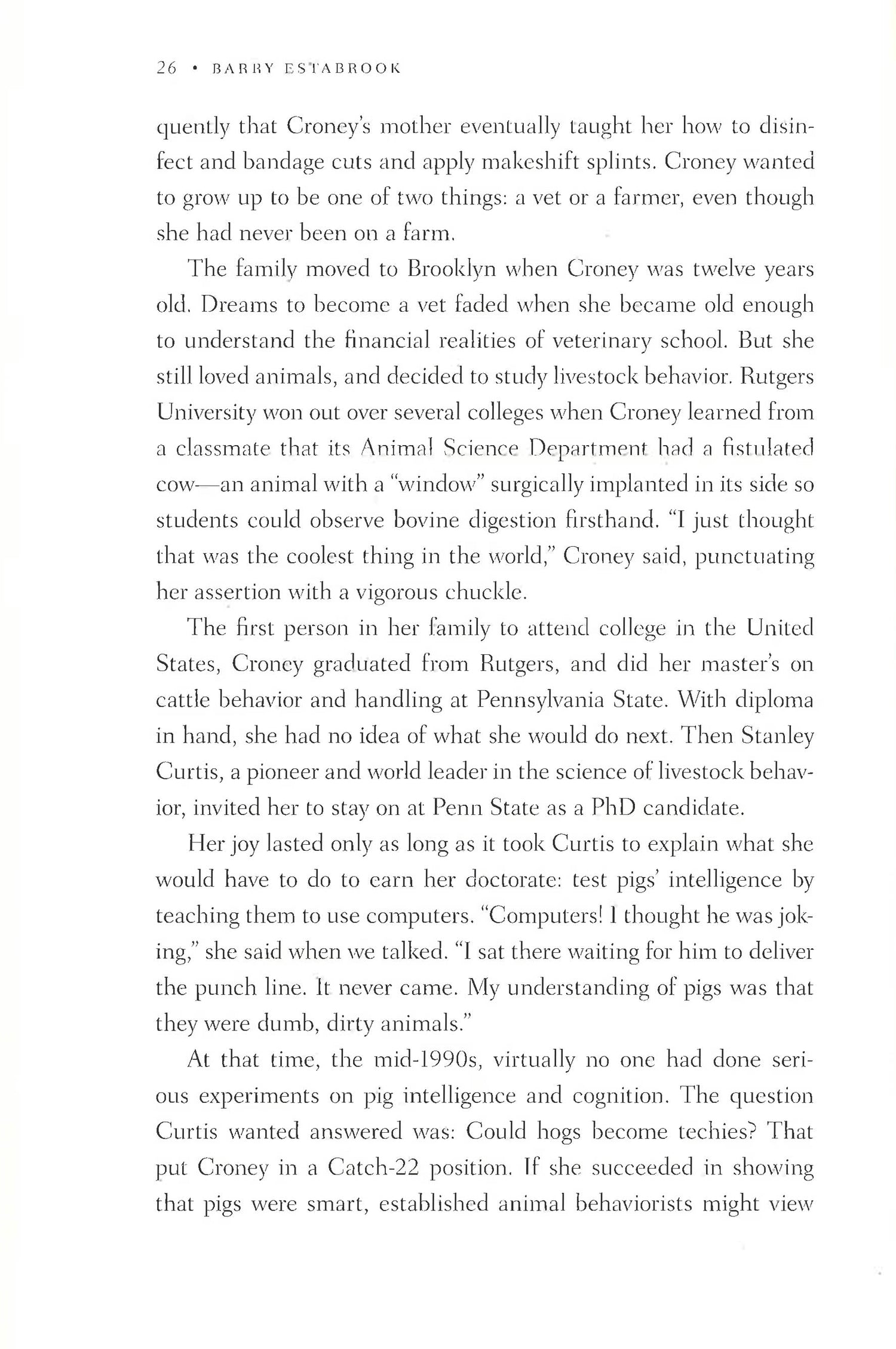 Barry Estabrook, author of the New York Times bestseller Tomatoland and a writer of "great skill and compassion" (Eric Schlosser), now explores the dark side of the American pork industry. Drawing on his personal experiences raising pigs as well as his sharp investigative instincts, Estabrook covers the range of the human-porcine experience. He embarks on nocturnal feral pig hunts in Texas. He visits farmers who raise animals in vast confinement barns for Smithfield and Tyson, two of the country's biggest pork producers. And he describes the threat of infectious disease and the possible contamination of our food supply. Through these stories shines Estabrook's abiding love for these remarkable creatures. Pigs are social, self-aware, and playful, not to mention smart enough to master the typical house dog commands of "sit, stay, come" twice as fast as your average pooch. With the cognitive abilities of at least three-year-olds, they can even learn to operate a modified computer. Unfortunately for the pigs, they're also delicious to eat. Estabrook shows how these creatures are all too often subjected to lives of suffering in confinement and squalor, sustained on a drug-laced diet just long enough to reach slaughter weight, then killed on mechanized disassembly lines. But it doesn't have to be this way. Pig Tales presents a lively portrait of those farmers who are taking an alternative approach, like one Danish producer that has a far more eco-friendly and humane system of pork production, and new, small family farms with free-range heritage pigs raised on antibiotic-free diets. It is possible to raise pigs responsibly and respectfully in a way that is good for producers, consumers, and some of the top chefs in America. Provocative, witty, and deeply informed, Pig Tales is bound to spark conversation at dinner tables across America.