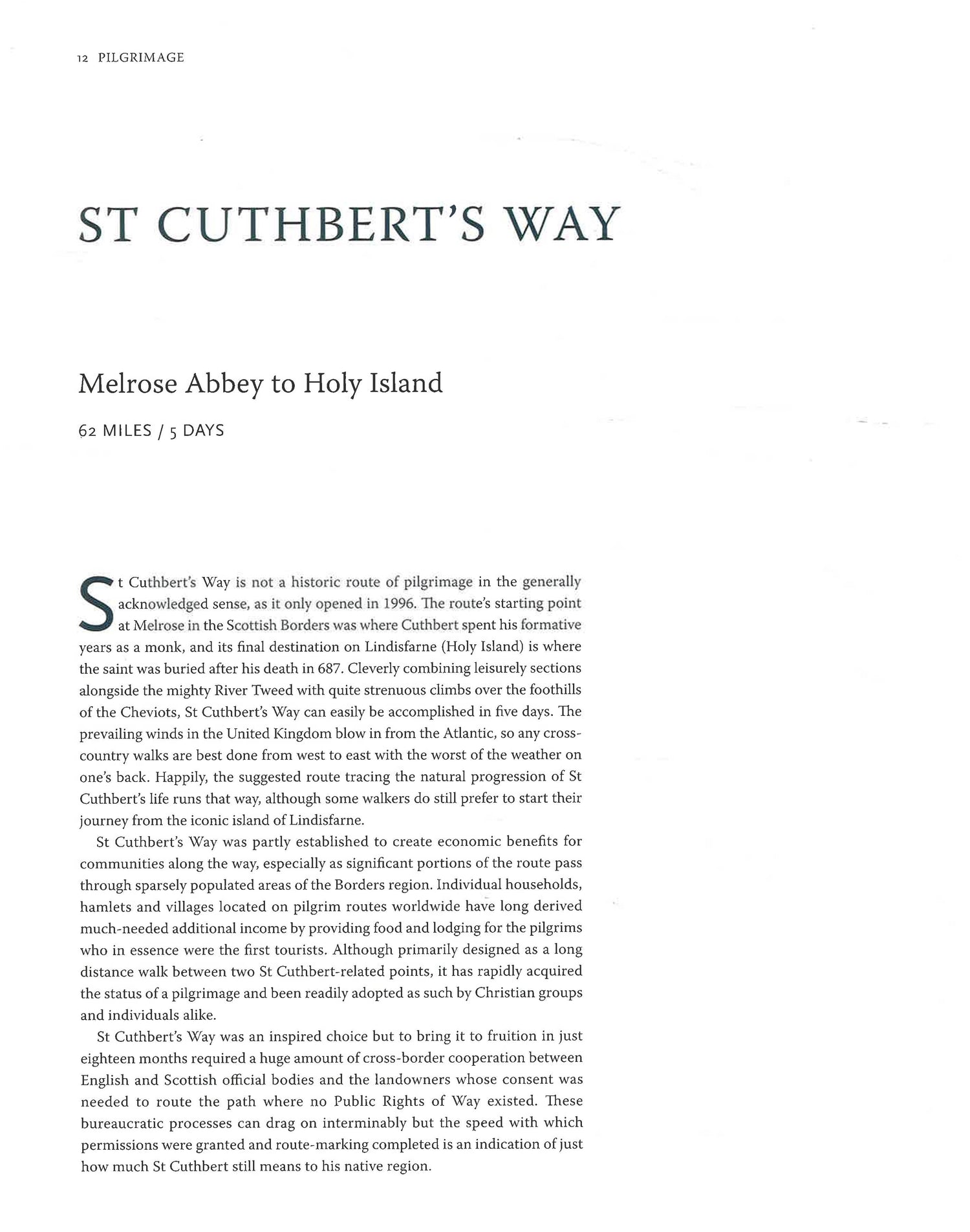 Whether you’re truly making a pilgrimage, exploring the world, or simply hiking, Pilgrimage will lead you along deeply historical routes like the 'Jakobsweg' in Germany, between Cologne and Trier. You’ll find great walks in Britain and France, like St. Cuthbert's Way which winds around the Scottish Borders to the holy island of Lindisfarne, and the World Heritage Site of Mont-St-Michel built on the tiny island off the coast of Normandy.