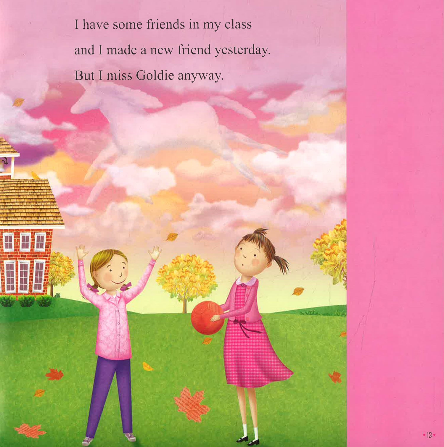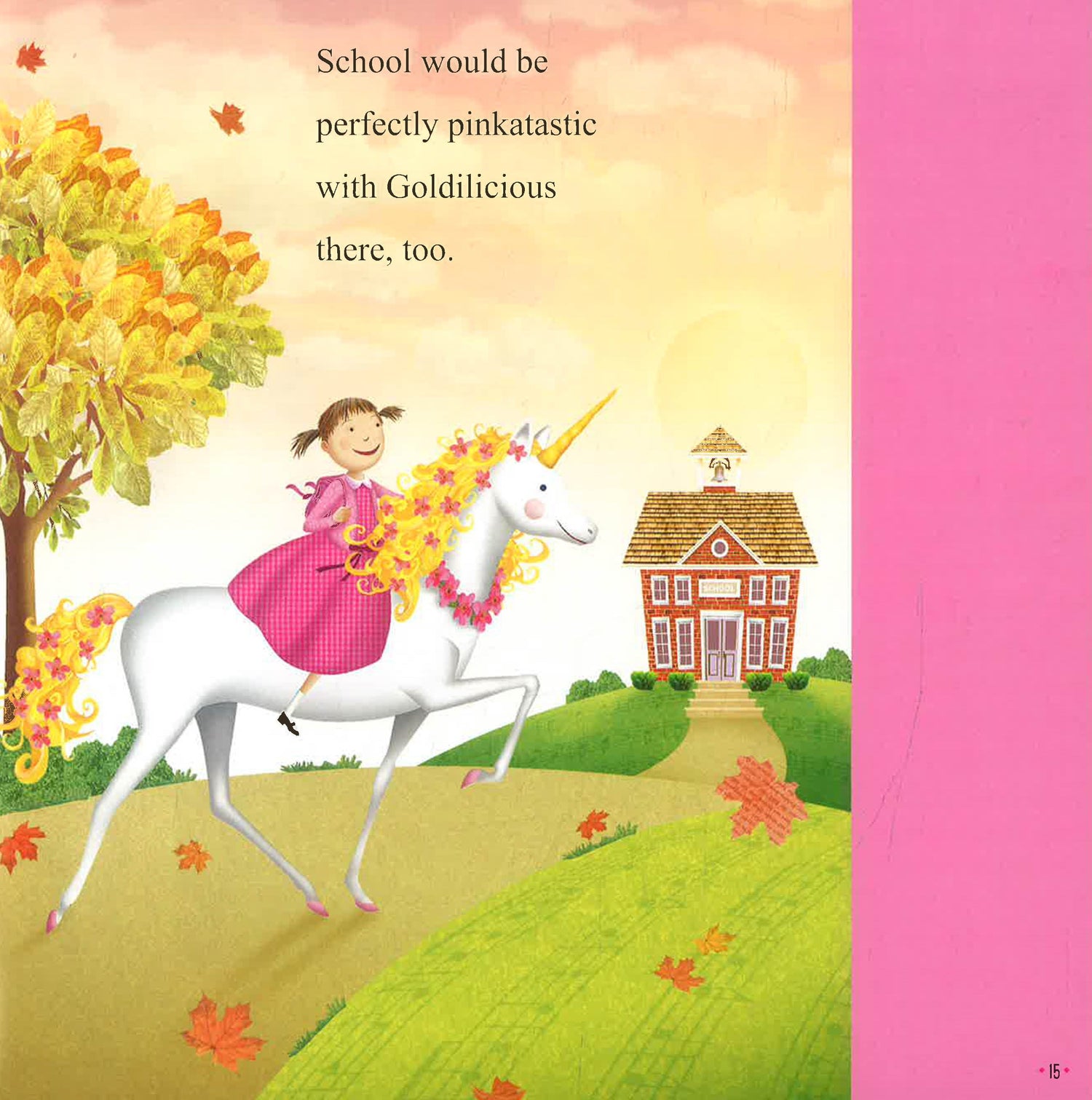 Pinkalicious brings her imaginary unicorn, Goldie, to class. She rescues a pink parakeet on a class trip to the birdhouse. She turns a sick day into an adventure and takes part in a writing festival. Pinkalicious gets school lunch for the first time. And she welcomes the brand-new teacher to school.