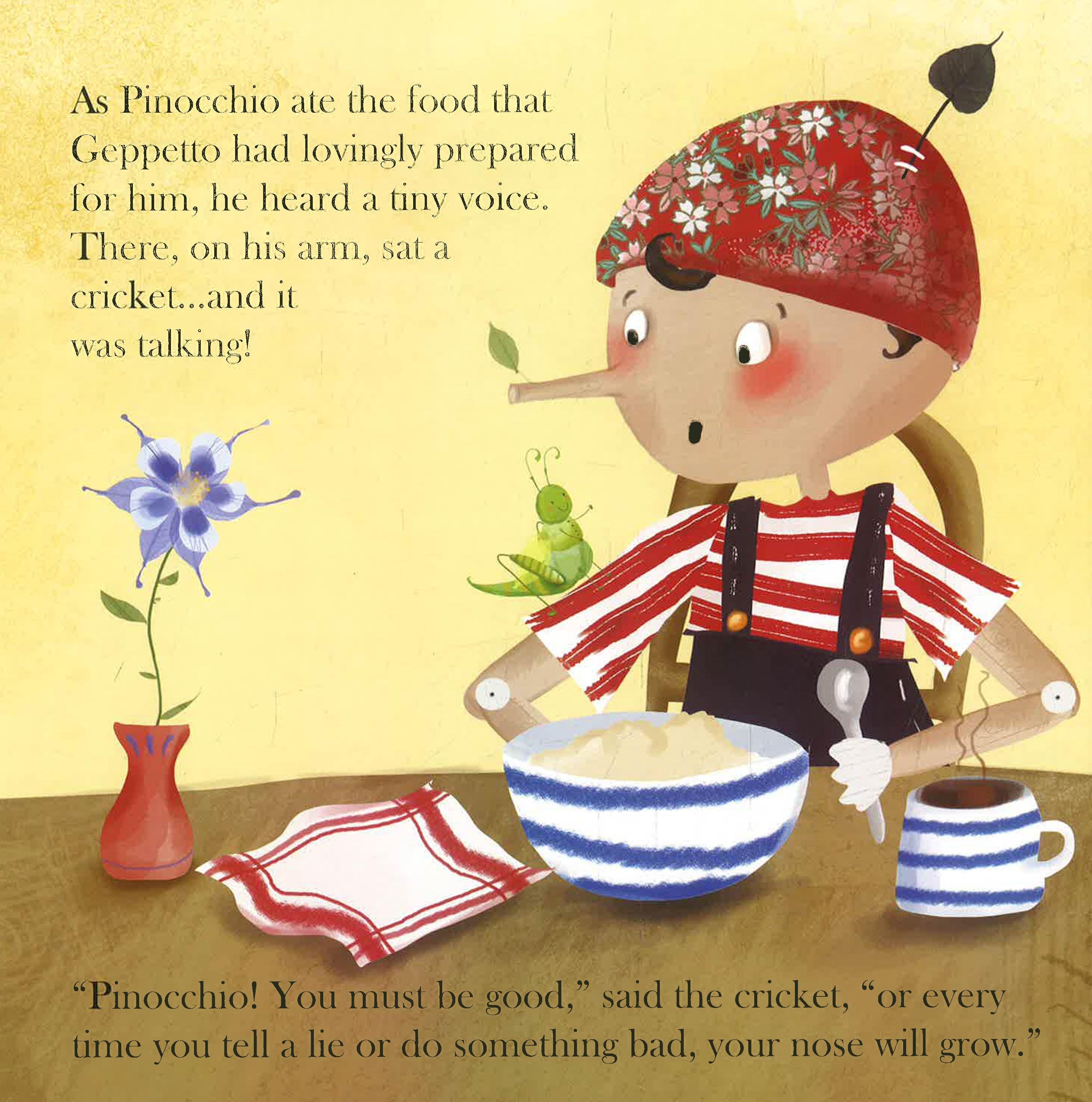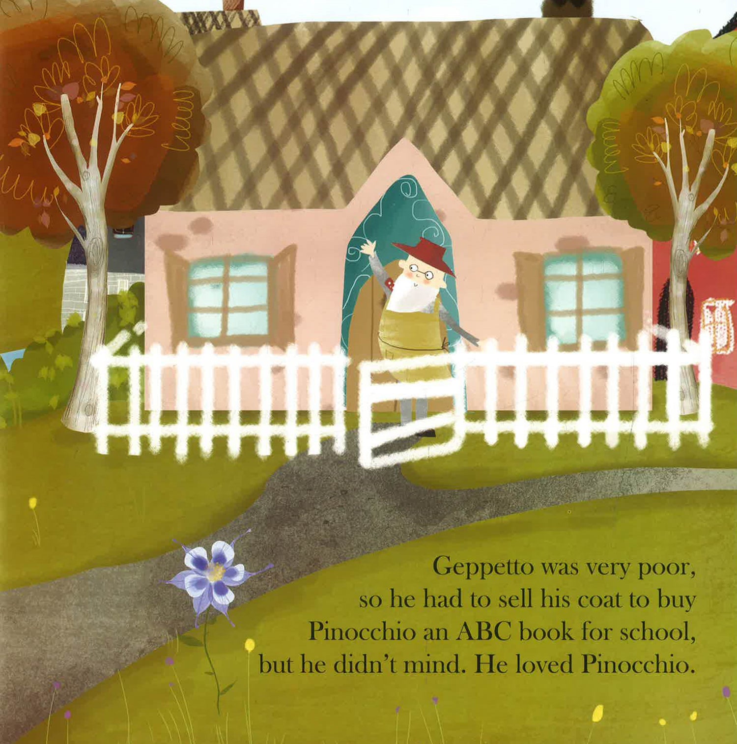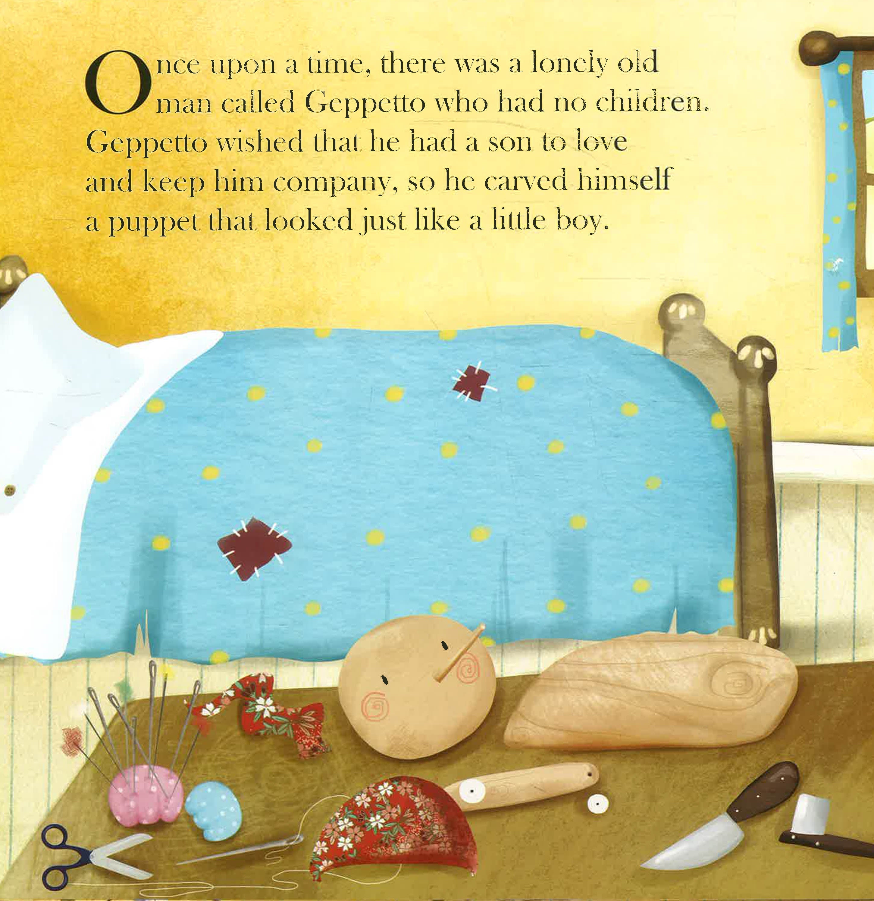 Once upon a time, there was a lonely old man called Geppetto. He wished that he had a son to love and keep him company, so he carved himself a puppet that looked just like a little boy. He called it Pinocchio.