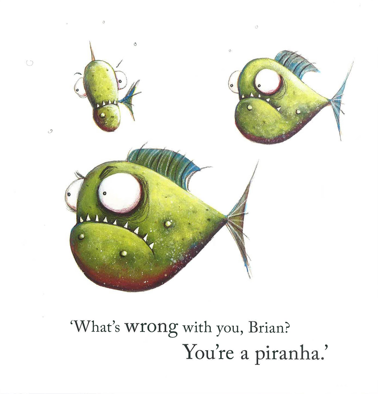 Hey there guys. Would you like a banana? What's wrong with you. Brian? You're a piranha. Brian loves bananas. Trouble is, Brian's a piranha. And his friends aren't happy about his fondness for fruit!. From the best-selling author of PIG THE PUG and THELMA THE UNICORN comes one of the funniest and cheekiest books you'll ever read.
