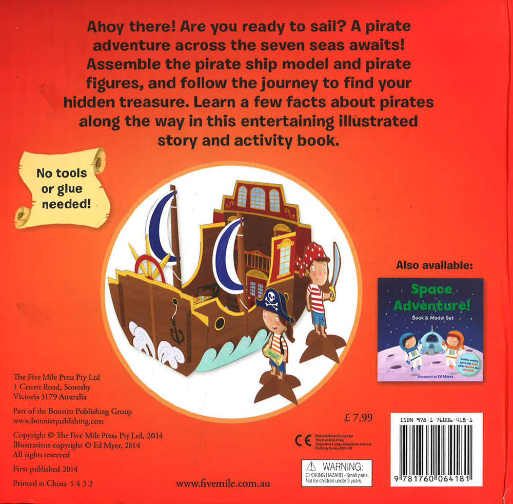 Get ready to set sail, and blast off into space, in these exciting adventure story and model books! Build the simple, sturdy pirate ship and space ship, and learn a little bit about the seas and the solar system as you follow the adventure! A fun and entertaining picture story book with a little bit of non-fiction included - kids will love following the adventure while learning a few cool facts about pirates and space! A sturdy, easy to assemble model of a funky space ship and pirate ship, plus two character standee figures in each set - no glue or tools needed! Bright and bold illustrations by the amazing Ed Myer.