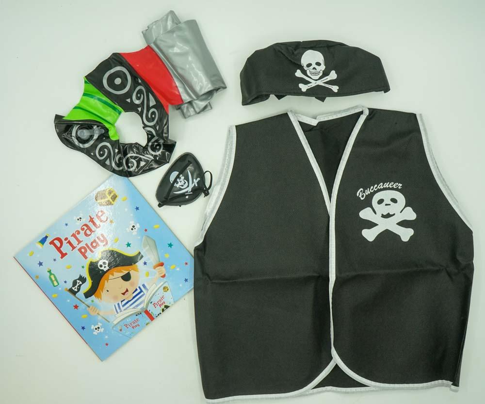 Ahoy there! Get ready for a swashbuckling adventure with this amazing pirate dress-up box. With an awesome sword, waistcoat, eyepatch and bandana to wear, plus an exicting storybook, little pirates will be entertained for hours.