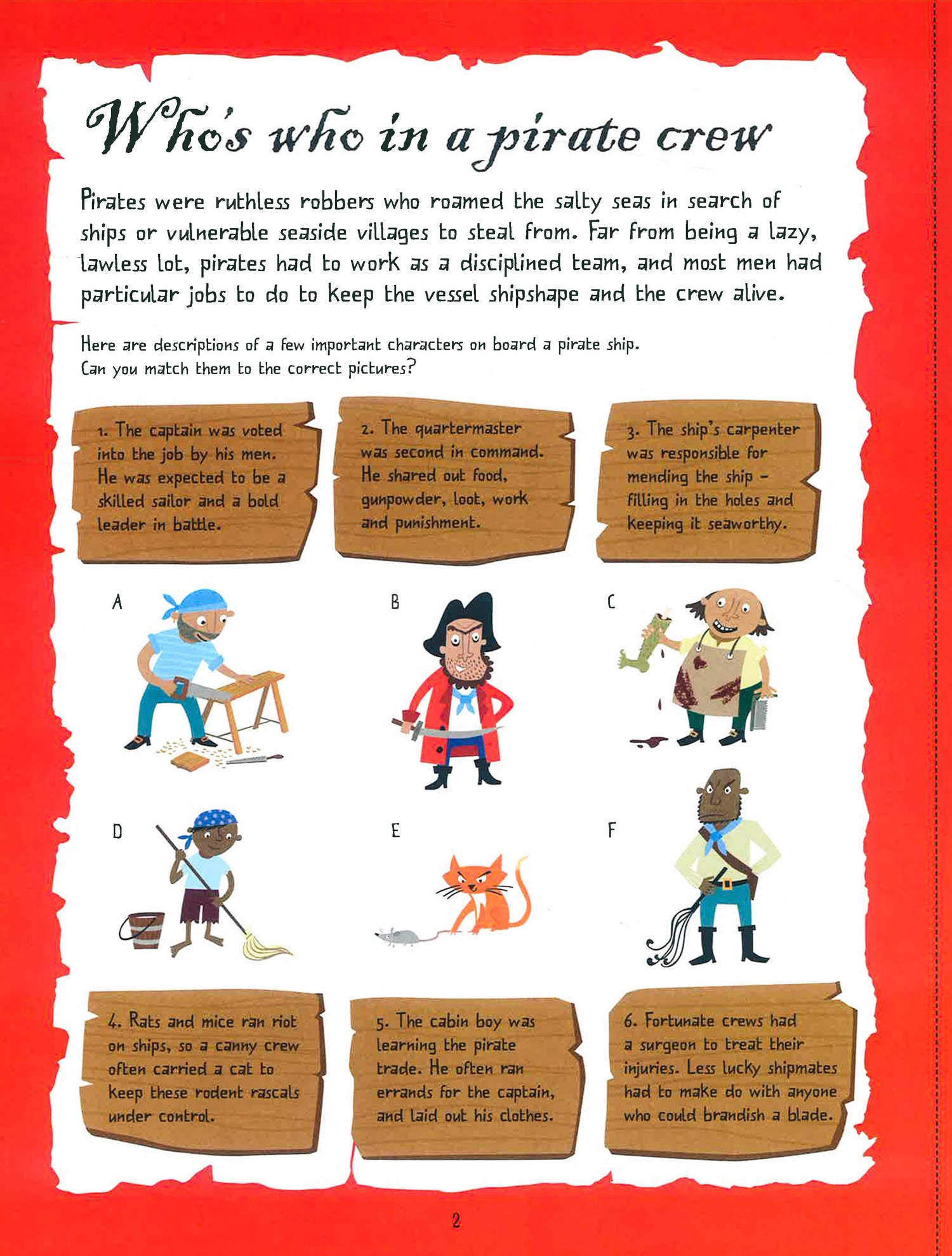 This title features a cackling crew of rogues and ruffians to colour, from the cabin boy, the cook and the carpenter to the cantankerous captain himself. You can find out all about life on a pirate ship: dine at the captain's table, slumber in a swinging hammock below deck with snoring shipmates, endure mutinies, marooning and shipwreck, and take your share of the pirates' plunder. Extra activities include designing a pirate flag, drawing pirates step-by-step, writing a treacherous tale of pirate skulduggery, taking part in a treasure hunt, navigating a maritime maze, and discovering lots of interesting pirate facts along the way.