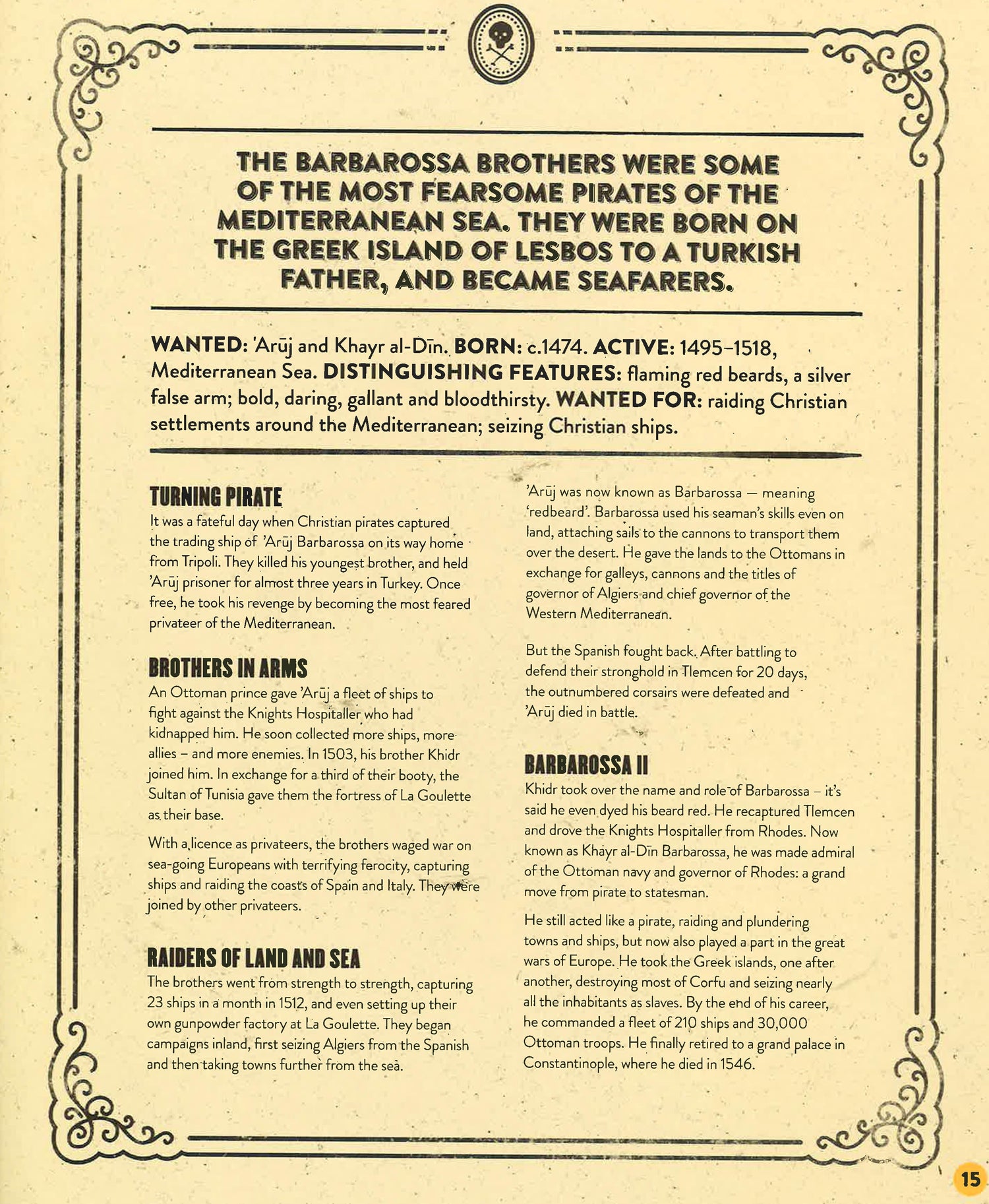 Ahoy, there! Get set for a thrilling voyage as you explore pirates throughout history and across the globe.Who were the real pirates of the Caribbean - and beyond? Find out! Pirates: Dead Men’s Tales brings us face to face with some of the most villainous and scurrilous rogues ever to sail the seven seas. Travel from North Africa to the China Seas to meet the notorious Blackbeard, the fearsome Barbarossa brothers, and the women pirates Mary Read, Anne Bonny, and Zheng Shi. With five sumptuous maps, themed spreads, and true tales of a pirate’s daily life, this book takes you on an epic adventure.