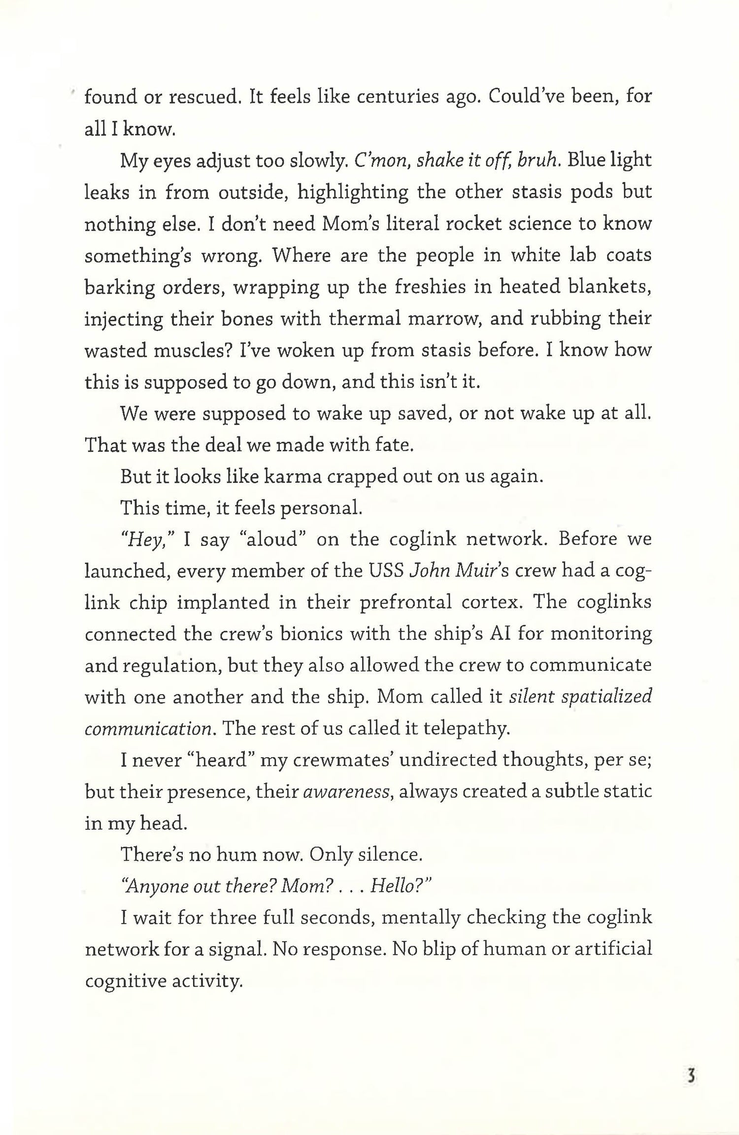 Lost to time, Tuck Morgan and his crew have slept in stasis aboard the USS John Muir for centuries. Their ship harbors a chunk of Earth, which unbeknownst to them, is the last hope for the failing human race.