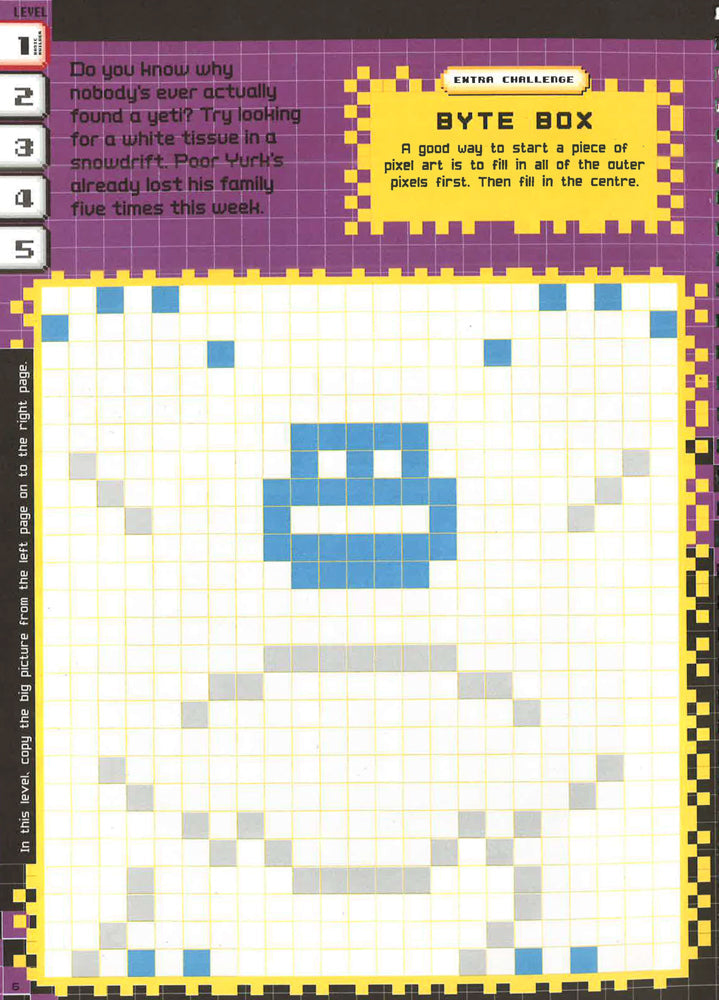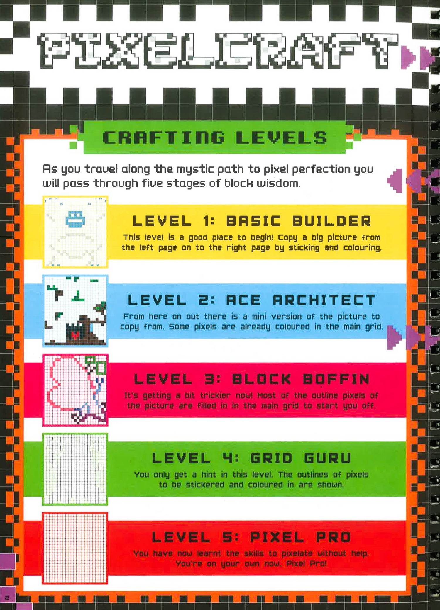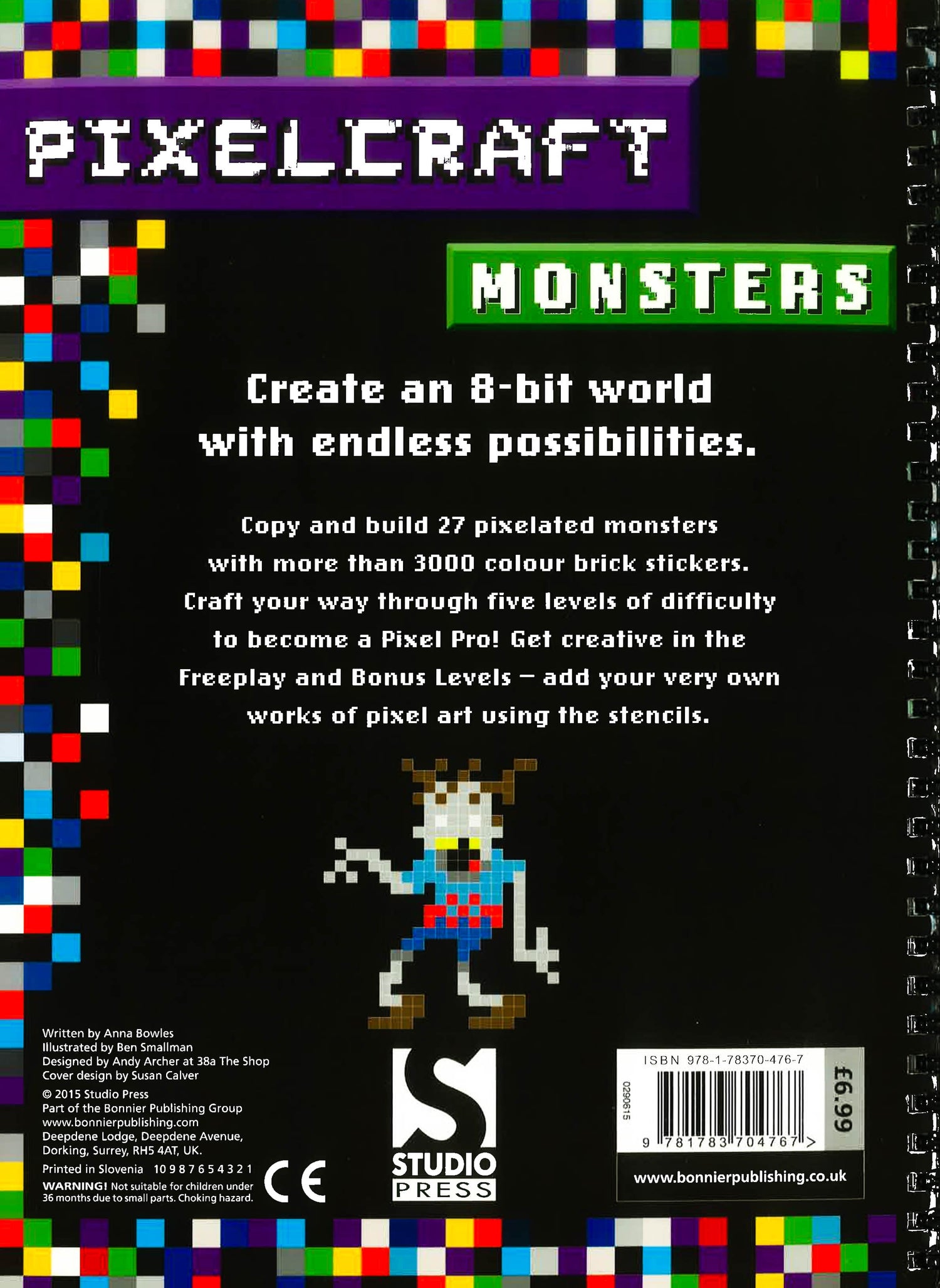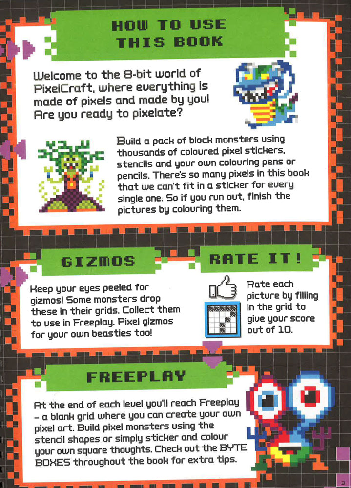 PixelCraft is a new range of sticker activity books that allow kids to build an 8-bit world with endless creative possibilities. Each book includes a card stencil sheet of characters, animals and objects, and more than 3000 colour brick stickers. Copy and build pixel images with stickers, colour in cube-y people and use the stencils to fill in scenes. Plus, there are blank gridded pages for readers to build their own works of Pixelcraft. Create a pack of blocky creatures in 'PixelCraft Monsters' and see if you can make it from Level 1: Basic Builder to Level 5: Pixel Pro. Are you brave enough to build Yurk the Yeti? Can you summon up the courage to face Roadberk, or Scorcher the fire-breathing dragon? See if you can tame these monsters by perfect pixelling!