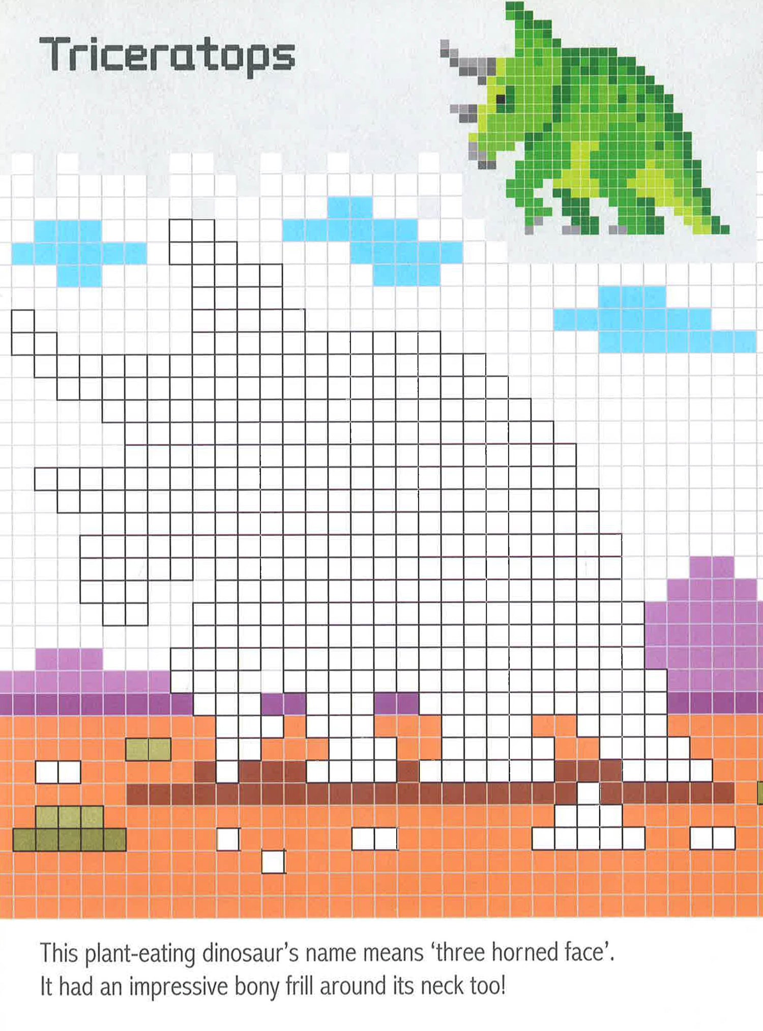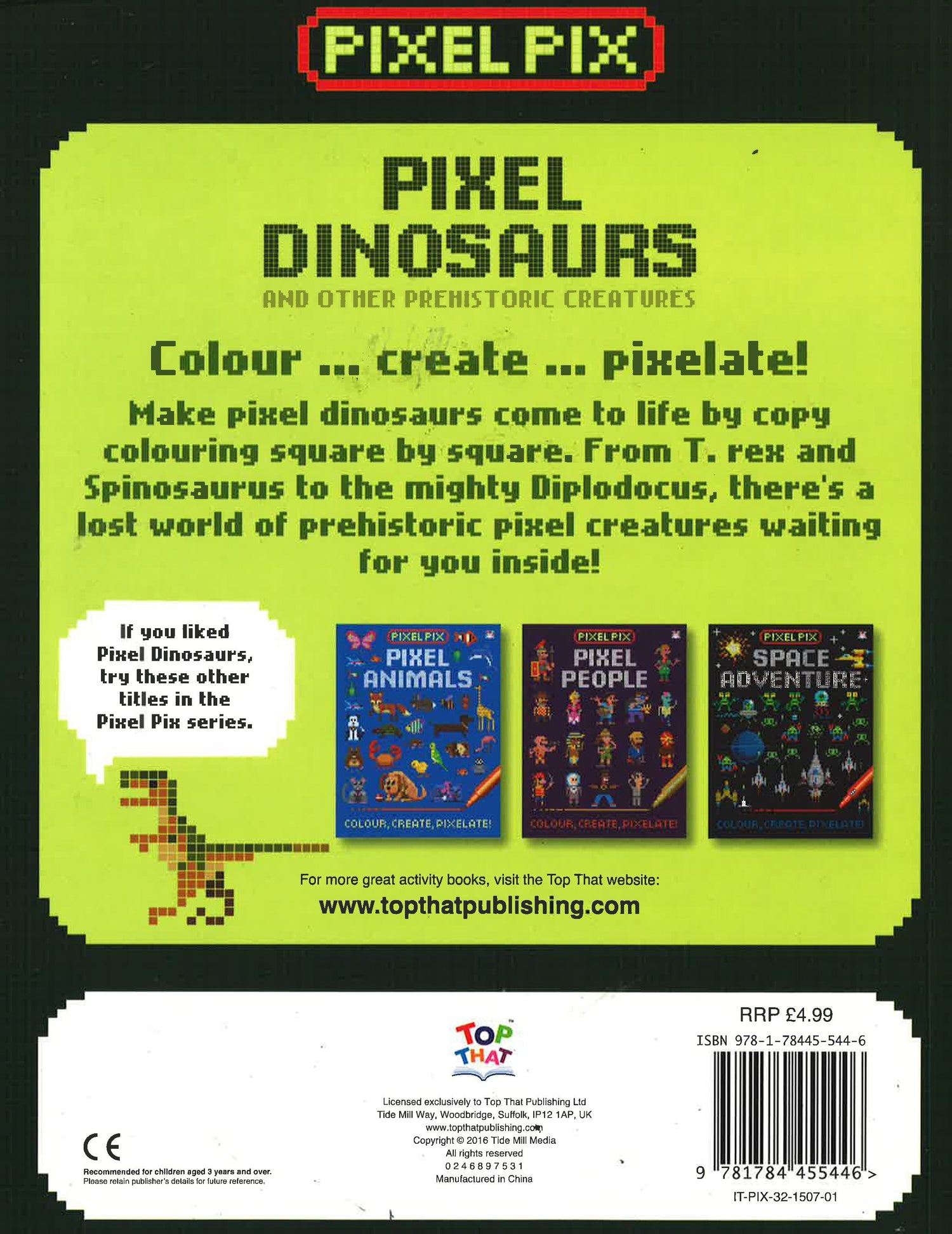 Pixel Dinosaurs from Top That Publishing is a cool copy colouring book from children aged 5 . Bring pixel dinosaurs roaring to life by copy colouring square by square. From T. rex and Spinosaurus to the mighty Diplodocus, there's a lost world of prehistoric pixel creatures waiting inside! Written by Oakley Graham and illustrated by Barry Green.