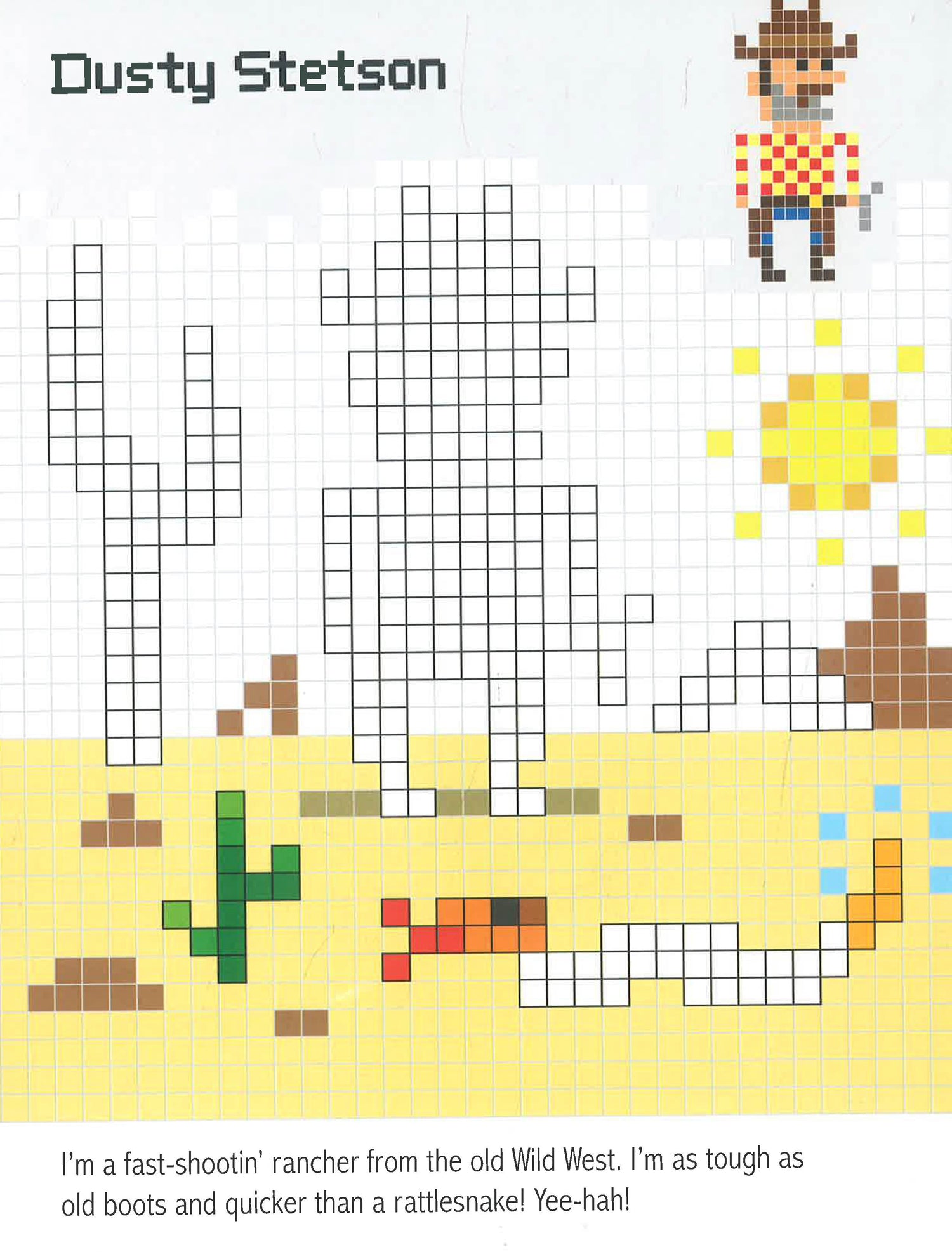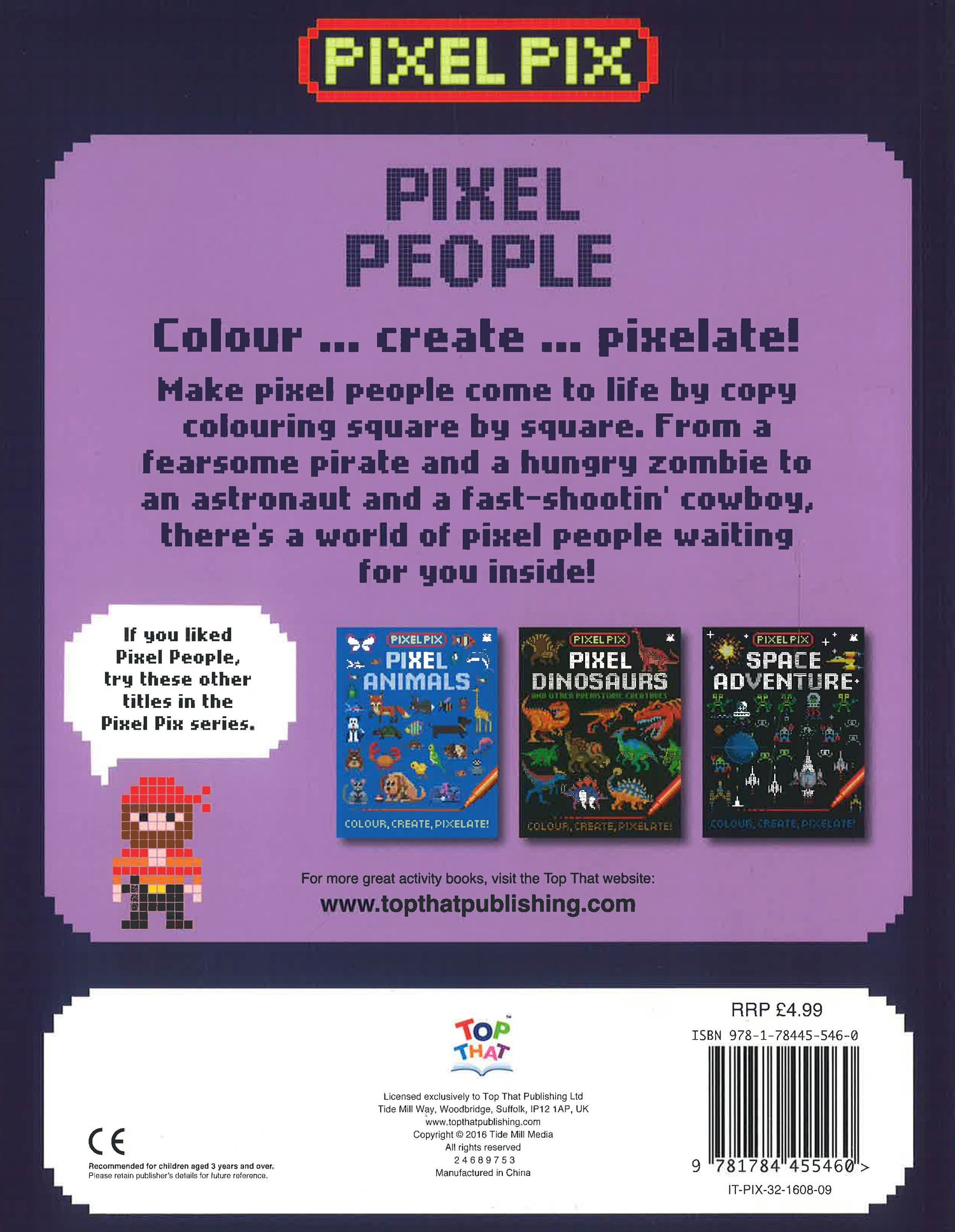 Pixel People from Top That Publishing is a cool copy colouring book for children aged 5+. Make pixel people come to life by copy colouring square by square. From a fearsome pirate and a hungry zombie to an astronaut and a fast-shootin cowboy, theres a world of wacky pixel people waiting for you inside!