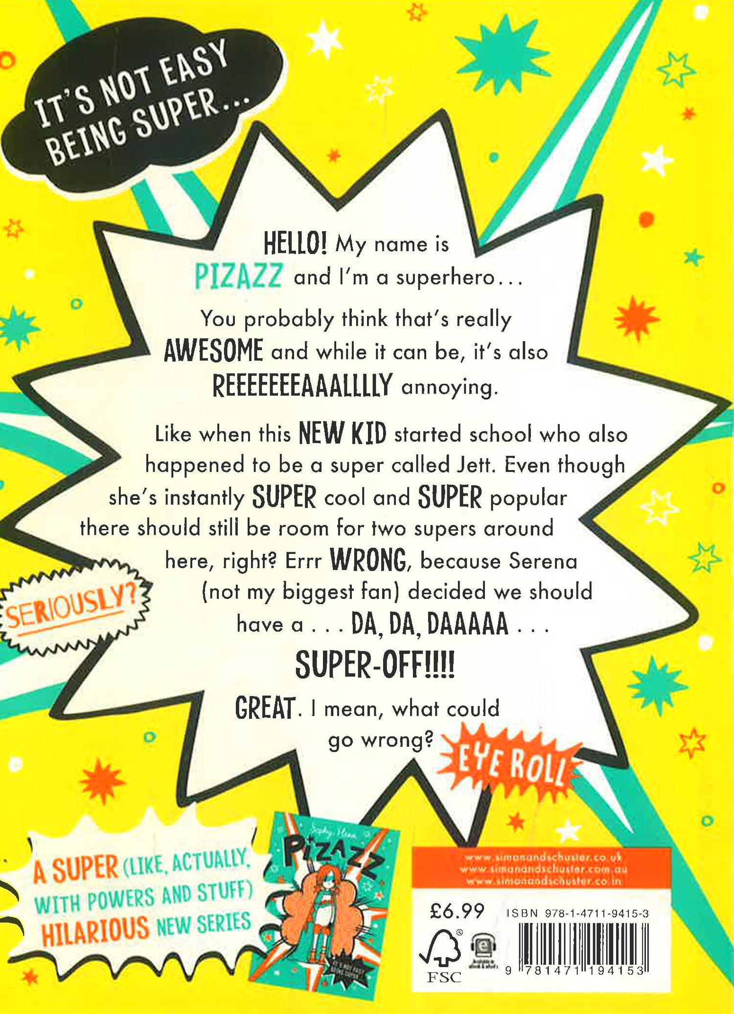 The super (like, actually, with powers and stuff) series from the amazingly talented Sophy Henn, award-winning author and illustrator of Bad Nana! The perfect read for children aged 7, 8, 9 and upwards, and for fans of Dork Diaries, Tom Gates, Amelia Fang, Wimpy Kid and Dog Man. “A SPECTACULAR superhero story that fizzes with fun on every page!” – Liz Pichon, bestselling author of the TOM GATES series. BEING A SUPERHERO IS THE BEST THING EVER, RIGHT? WRONG! HELLO! My name is PIZAZZ and I’m a superhero . . . You probably think that’s really AWESOME, and while it can be, it’s also REEEEEEEAAALLLLY annoying. I guess it was sort of going OK (I say, “sort of” – I still have to wear a silly cape and save the world all the time) until this NEW KID showed up, and started WOWING everyone with their super powers. Yep, SUPER POWERS – just what this town needs, another super . . . Who just happens to have the coolest name ever: Jett. And now, because of Serena and her gang of Populars, I have to compete against Jett in an almighty and ultimate SUPER-OFF. But it’s fine. I mean, even if I lose, there’s space for two SUPERS in this school, isn’t there?!Hilariously narrated by reluctant superhero Pizazz, and brimming with Sophy’s distinctive illustrations and comic-book strips. PRAISE for PIZAZZ: “Blocky comic-style panels, a fire-farting granddad and a conservationist message make for accessible, quirky reading” – Guardian, Children’s Book of the Month “Sophy Henn’s funny new series […] a witty and original reminder that superheroes are human too” – Sunday Times, Children’s Book of the Week “Full-page illustrations, comic-strip sequences, quirky typography and dramatic chapter openers ensure this book will appeal to more reluctant readers” – The i “Sophy Henn’s lively, energetic story should be a hit with anyone who finds it hard to fit in” – Financial Times “Perfect for fans of her previous series Bad Nana, with the same level of illustration and zany text throughout” – Booktrust