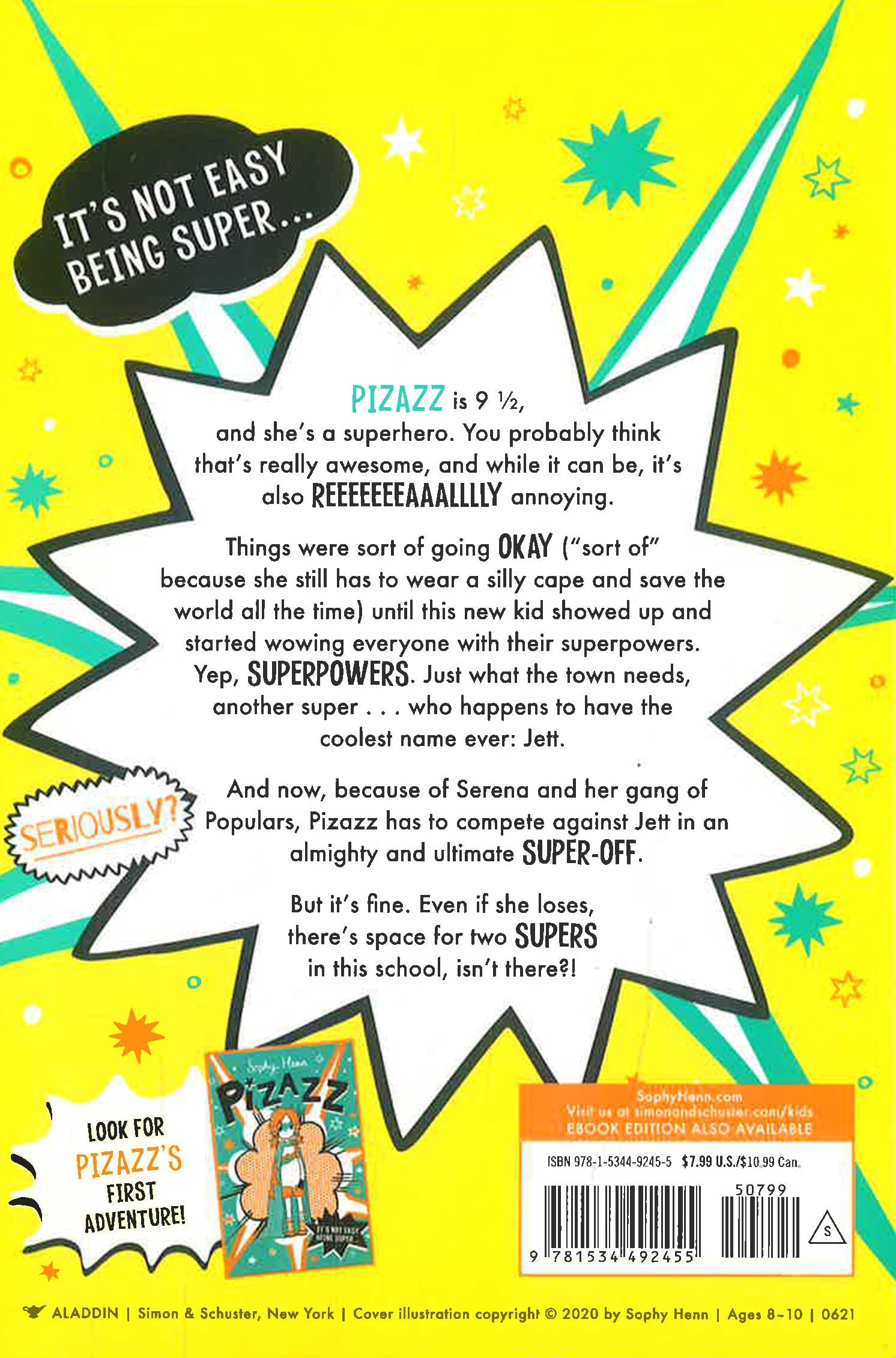 There’s a new kid at Pizazz’s school…a new super kid. A super competitive, super skilled, super popular superhero. At first, Pizazz hopes Jett being in her class will mean the Populars will have someone new to pick on. But instead of becoming a target of ridicule like Pizazz, Jett becomes the coolest kid in school. Talk about unfair.