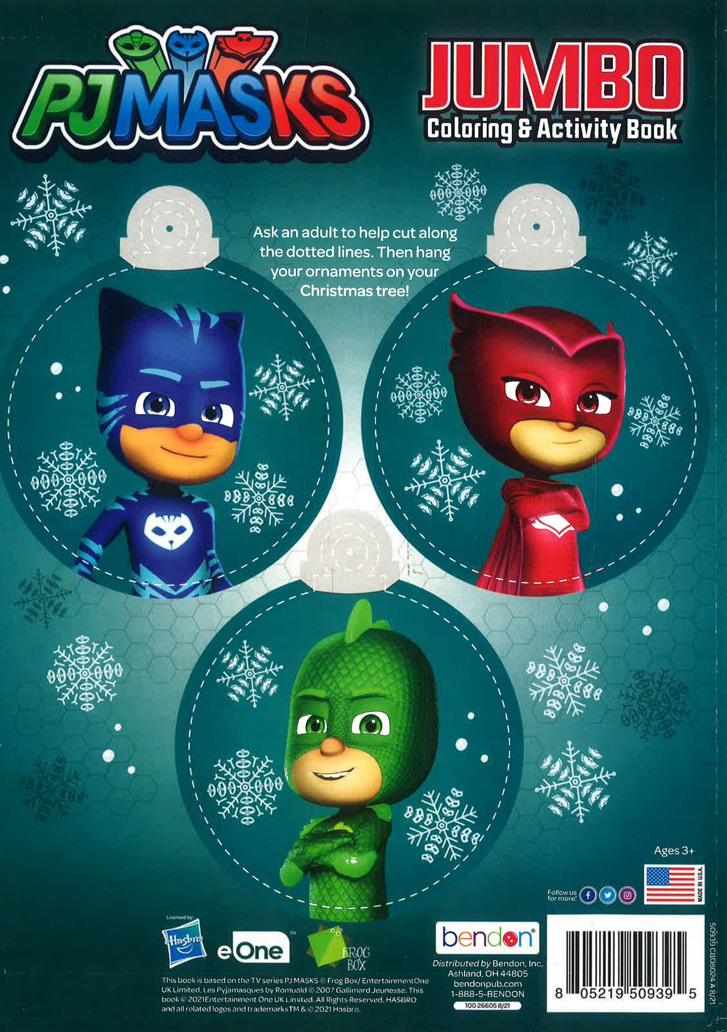 Enjoy Holiday colouring with all of your favourite PJ Masks characters in this 64pg jumbo coloring book! Also contains multiple activity pages. Ideal for ages 3 and up.