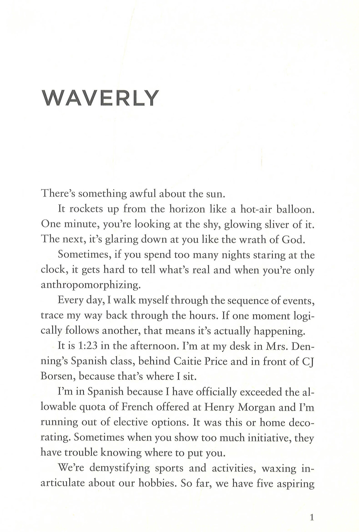 Waverly Camdenmar spends her nights running until she can't even think. Then the sun comes up, life goes on, and Waverly goes back to her perfectly hateful best friend, her perfectly dull classes, and the tiny, nagging suspicion that there's more to life than student council and GPAs.