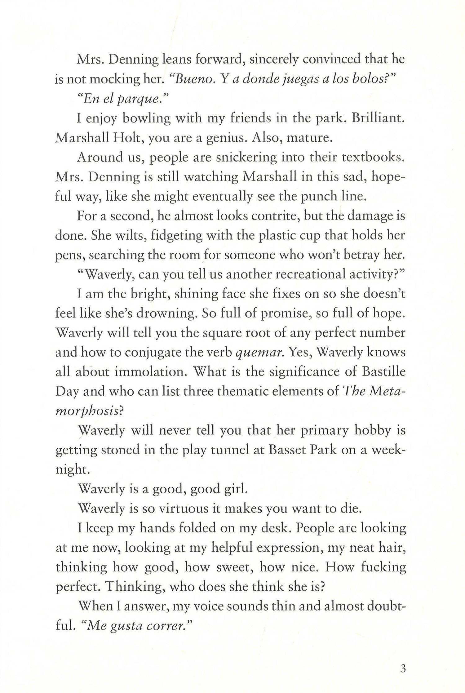 Marshall Holt is a loser. He drinks on school nights and gets stoned in the park. He is at risk of not graduating, he does not care, he is no one. He is not even close to being in Waverly's world.