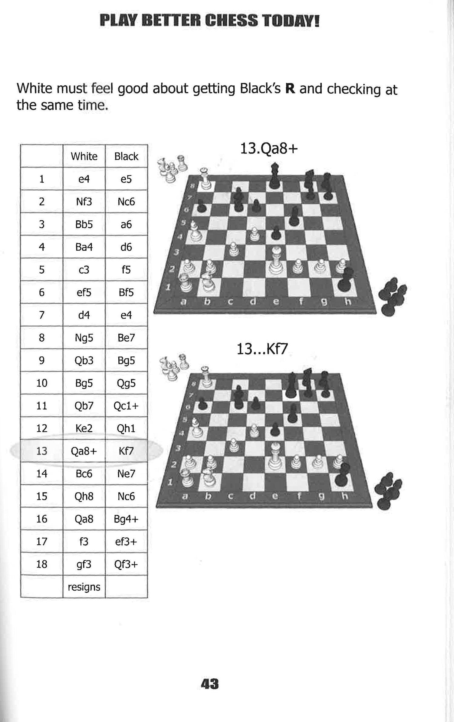 Oversized illustrations, easy instruction and callout tips and quizzes make for a perfect recipe for novice chess players to quickly improve and start winning games! P lay Better Chess Today! is perfect for players who have learned the basics and are ready to take their game to the next level and start winning games. This skill-building manual has more than 100 oversized diagrams that show how to exploit the strengths of each piece and defend against its weaknesses.