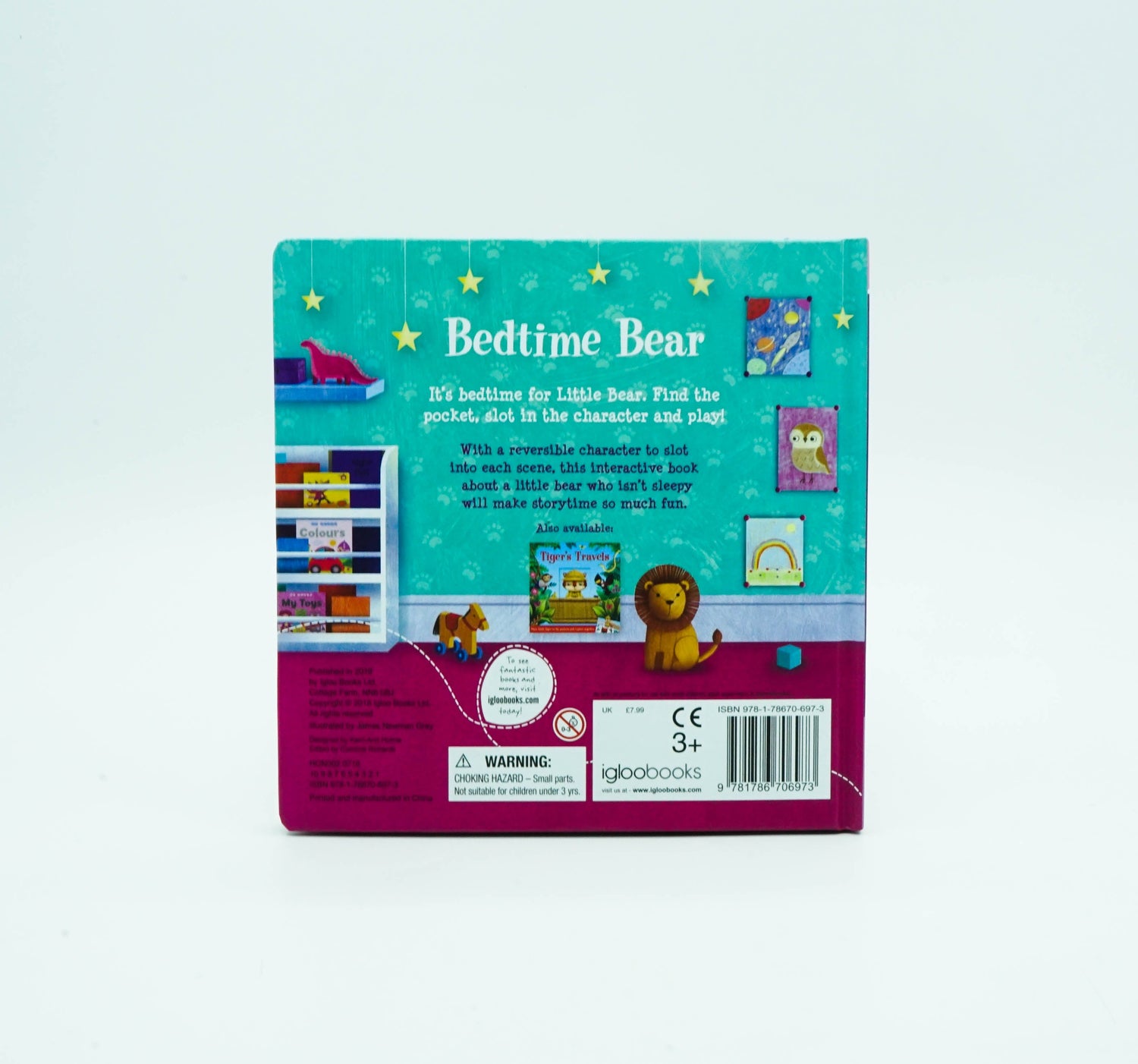 It's bedtime for Little Bear. Find the pocket, slot in the character and play! With a reversible character to slot into each scene, this interactive book about a little bear who isn't sleepy will make storytime so much fun.