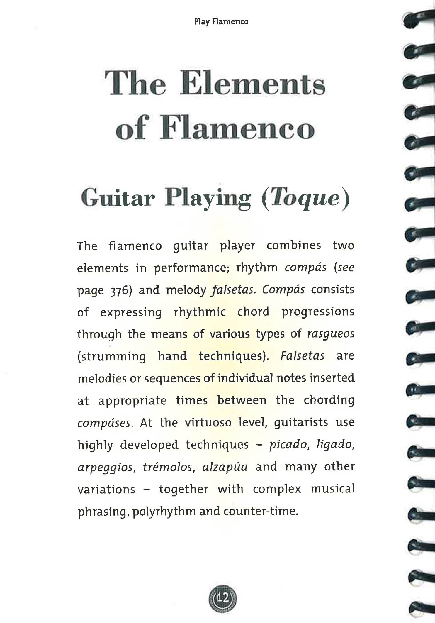 Originating from Andalusia in Spain, Flamenco music embodies a complex musical and cultural tradition. Now teach yourself the elements of this passionate and beautiful music on guitar with this practical and accessible guide. First, discover the background and spirit of flamenco, the hand and seating positions, and the technique, before being introduced to the many different palos, or styles - such as Alegrias, Bulerias and Fandangos - and learning some key falsetas, or phrases, for each.