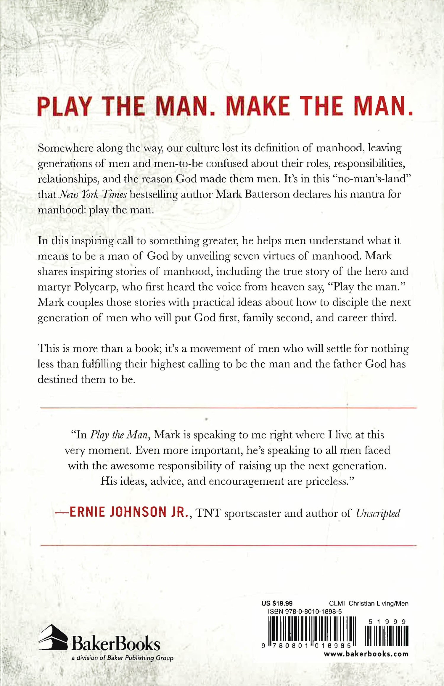 Somewhere along the way, our culture lost its definition of manhood, leaving generations of men and men-to-be confused about their roles, responsibilities, relationships, and the reason God made them men. It's into this "no man's land" that New York Times bestselling author Mark Batterson declares his mantra for manhood: play the man.In this inspiring call to something greater, he helps men understand what it means to be a man of God by unveiling seven virtues of manhood. Mark shares inspiring stories of manhood, including the true story of the hero and martyr Polycarp, who first heard the voice from heaven say, "Play the man." Mark couples those stories with practical ideas about how to disciple the next generation of men. This is more than a book; it's a movement of men who will settle for nothing less than fulfilling their highest calling to be the man and the father God has destined them to be. Play the man. Make the man.