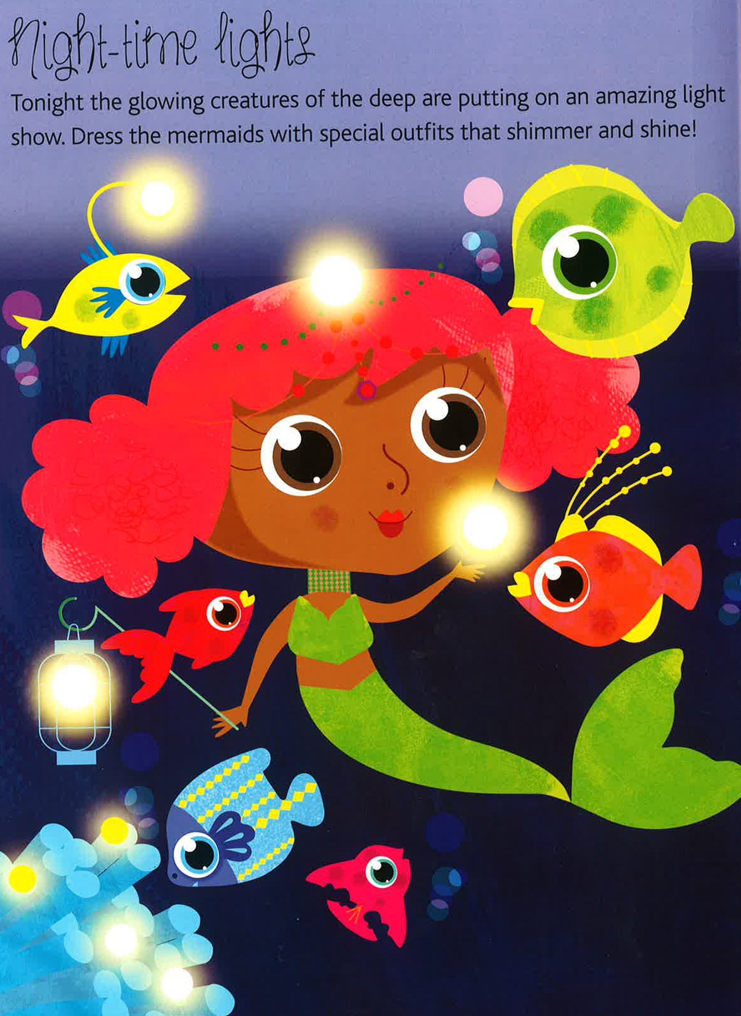 Dive into a delightful world of creative mermaid fun! With more than 200 reusable and colorful sticker outfits and accessories, children can complete an enchanting variety of underwater scenes by dressing mermaids swimming among glowing creatures of the deep, diving for pretty pearls, playing on a colorful coral reef, visiting exotic India, and more.