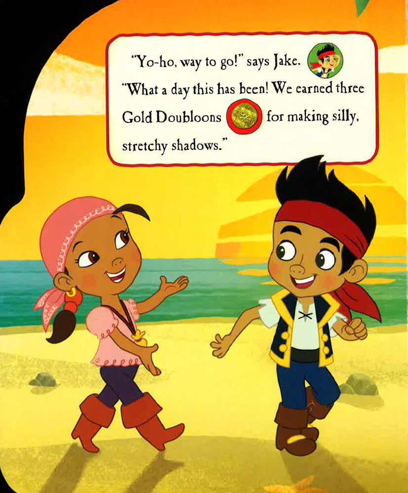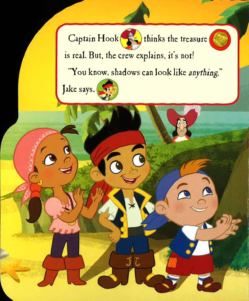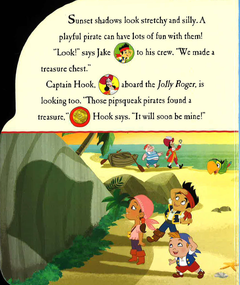 Jake and the Neverland Pirates: Playful Pirates sound book has an attached four-button audio module that enables children to add sound to a story. Children lift flaps on the book?s pages to find icons that match the buttons on the audio module. This sound book is recommended for children ages 18 months and older. The book?s thick, coated pages help prevent rips and tears. Three replaceable long-life AG-13 button cell batteries that power the book are included.