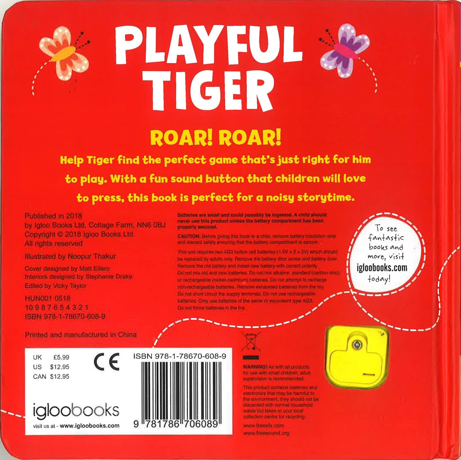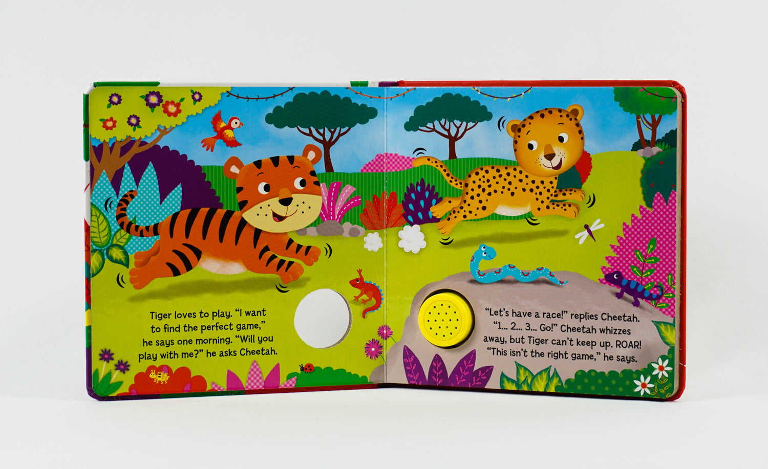 Roar! Roar! Help Tiger find the perfect game that's just right for him to play. With a fun sound button that children will love to press, this book is perfect for a noisy storytime.