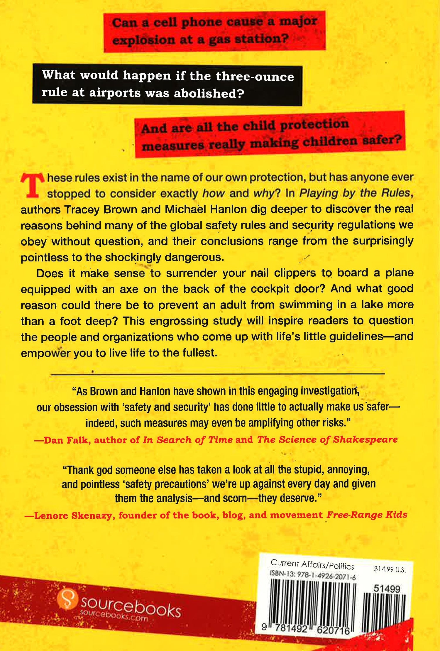 Does an airline pilot really need to surrender his tweezers at airport security when he's about to board an aircraft equipped with an axe on the back of the cockpit door? Can a mobile phone really cause a major explosion at a gas station? And is there really a good reason why you should be be prevented from swimming in a lake more than a foot deep?