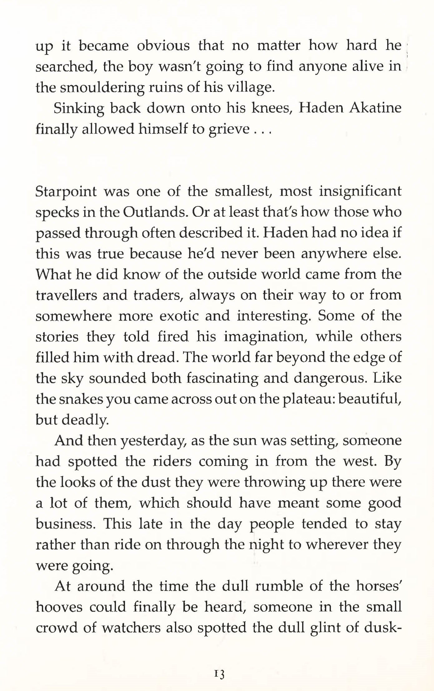 Haden Akatine's family are massacred in an unprovoked attack on his village by the cut-throat Sadar. Together with the only other survivor, a mute boy called Decker, Haden sets out across the wilderness looking for revenge.